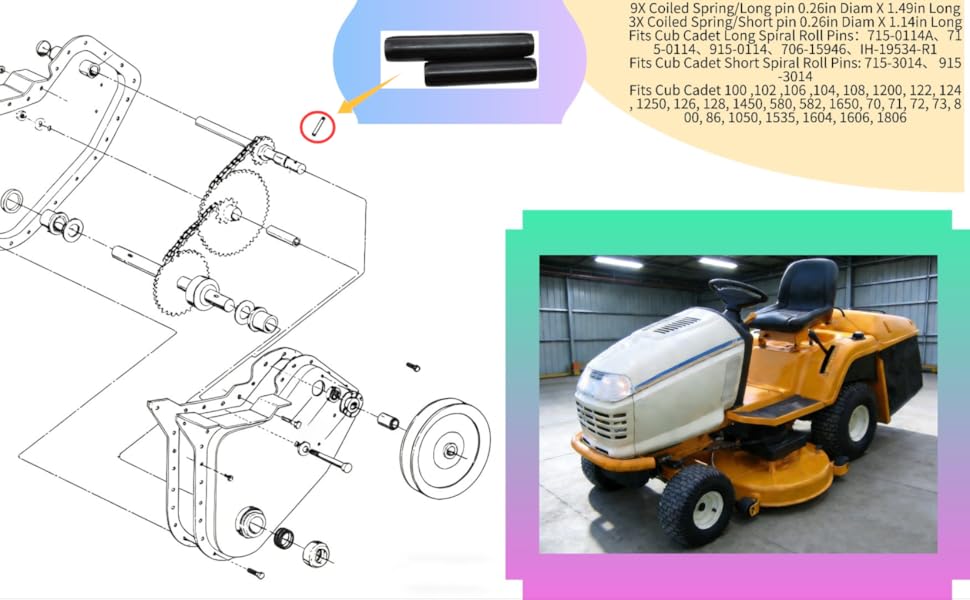 - يناسب دبابيس دوارة حلزونية طويلة من Cub Cadet: 715-0114A、715-0114、915-0114、706-15946、IH-19534-R1