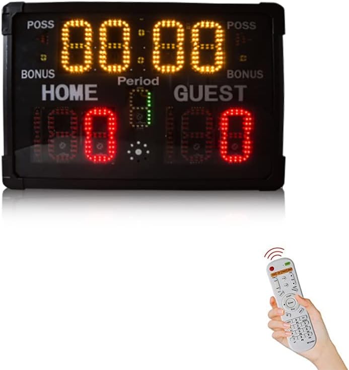 - Includes 2.4G Wireless Remote. Clock counts up to or down from 99:99 and max scores to 199.