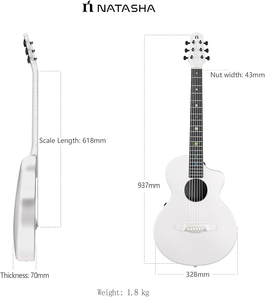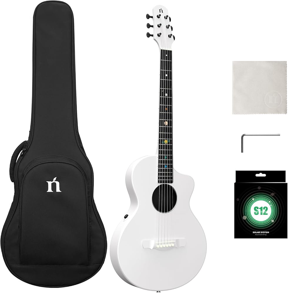 جيتار صوتي من ألياف الكربون من ناتاشا مع بيك اب NSX، جيتار سفر جيتار بسلسلة فولاذية مقاس 38 بوصة، جيتار متين رفيع للغاية مكون من 6 أوتار للمبتدئين والمتعلمين المتوسطين والكبار (لؤلؤ مشع)