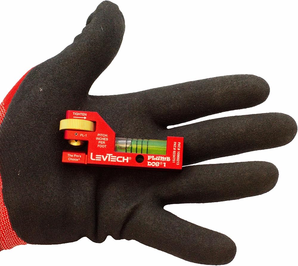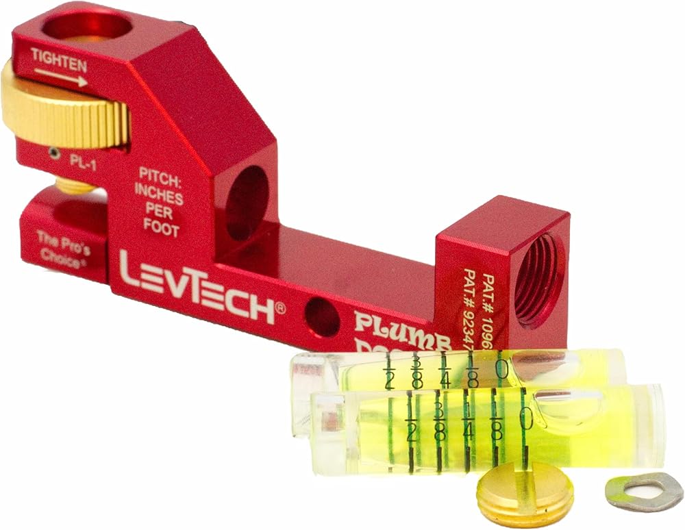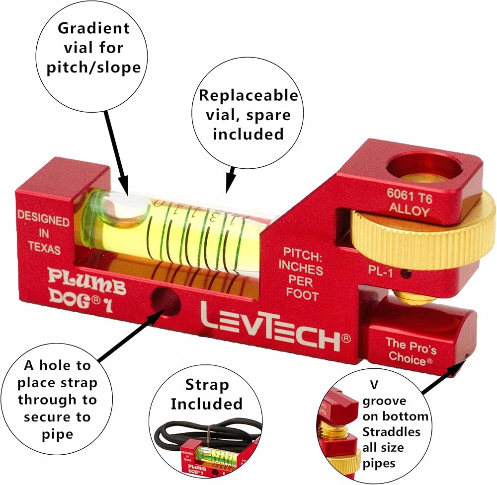 The LevTech PL1 Plumber's Compact Pitch Level revolutionizes slope work with its innovative design. As the smallest gradient level available, it excels in confined spaces while delivering professional-grade accuracy. Crafted from premium 6061 T6 Aluminum with CNC machining precision, this tool features a replaceable gradient vial with a bonus vial included. The thoughtful design incorporates powerful rare earth magnets and a 22.5" pipe strap for hands-free operation, while the thumbwheel grip ensures secure positioning. Three-sided visibility and laser-etched markings enhance usability in any position. The anodized finish provides lasting durability against corrosion, making it a reliable companion for demanding plumbing projects. This patent-protected tool combines compact convenience with professional-grade functionality, setting new standards for gradient measurement in tight spaces.