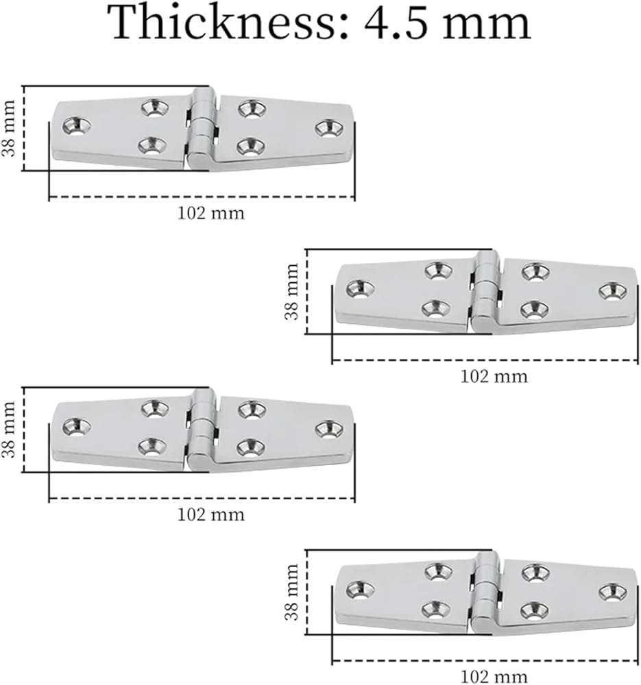 Stainless Steel 6 Holes Mirror Polishing Hinges 38X102MM 4Pcs