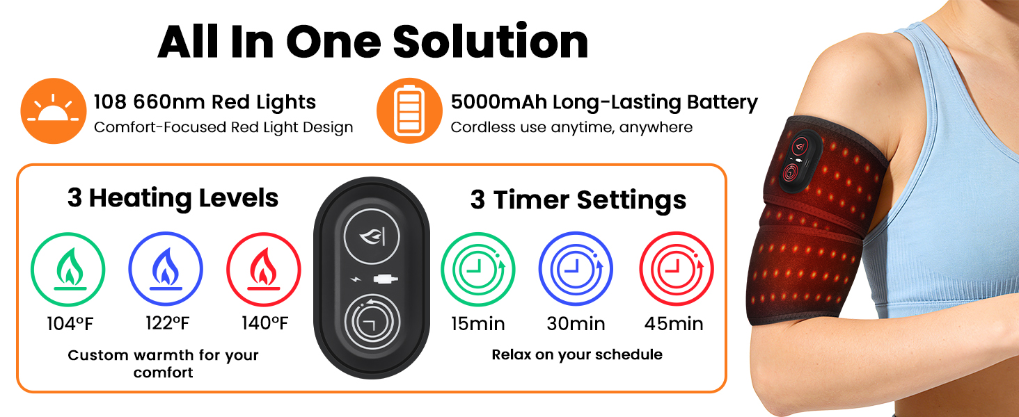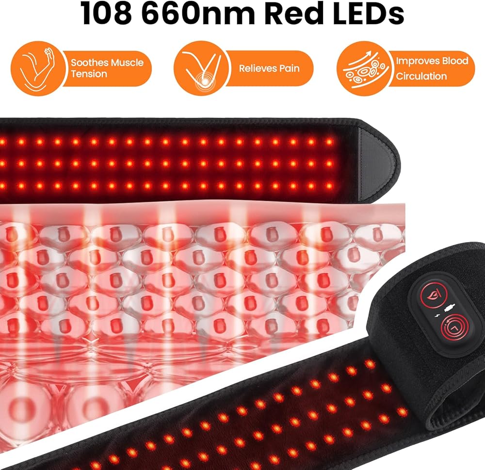 Red Light and Heat for Relaxation and Comfort: Upgraded with 108 red light beads combining 3pcs 660nm leds in a triple-chip design, paired with gentle heating for more stable and evenly distributed warmth across the wrapped area. Designed for daily relaxation and comfort, this dual warmth experience fits naturally into breaks, downtime, or quiet evenings without feeling bulky or intrusive