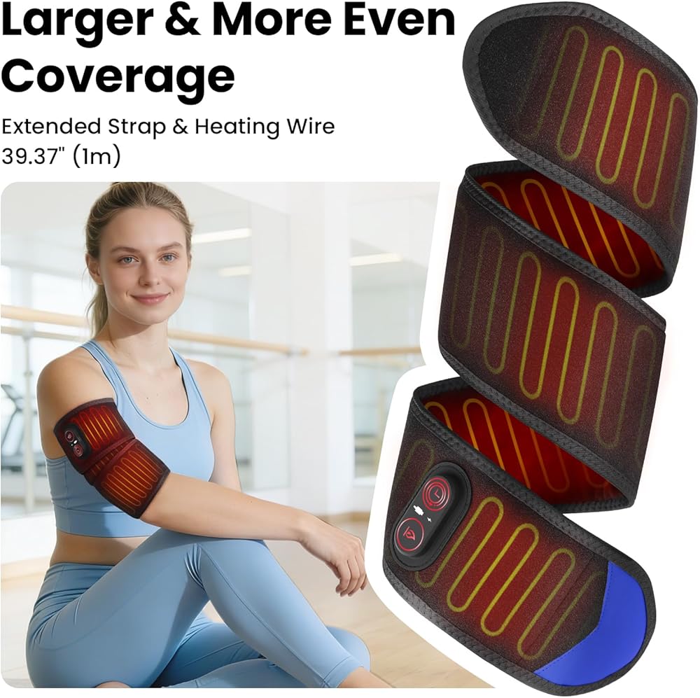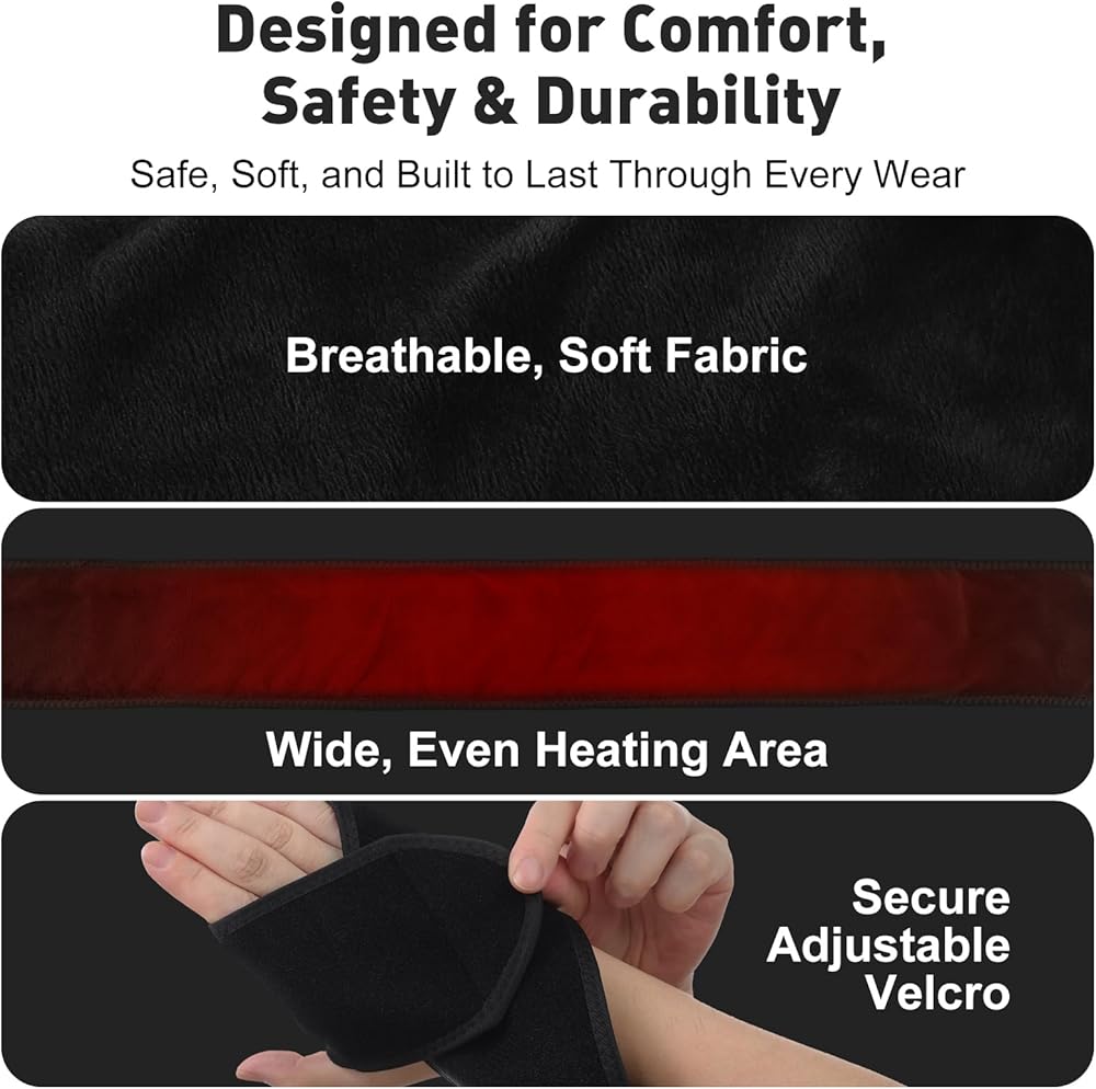 Extended & Even Heating Coverage: Measuring 39" long, the extended wrap-around design and optimized heating wire layout deliver wider and more uniform coverage than standard heating pads. This allows the wrap to comfortably fit around joints, limbs, or larger areas while maintaining consistent warmth without frequent repositioning