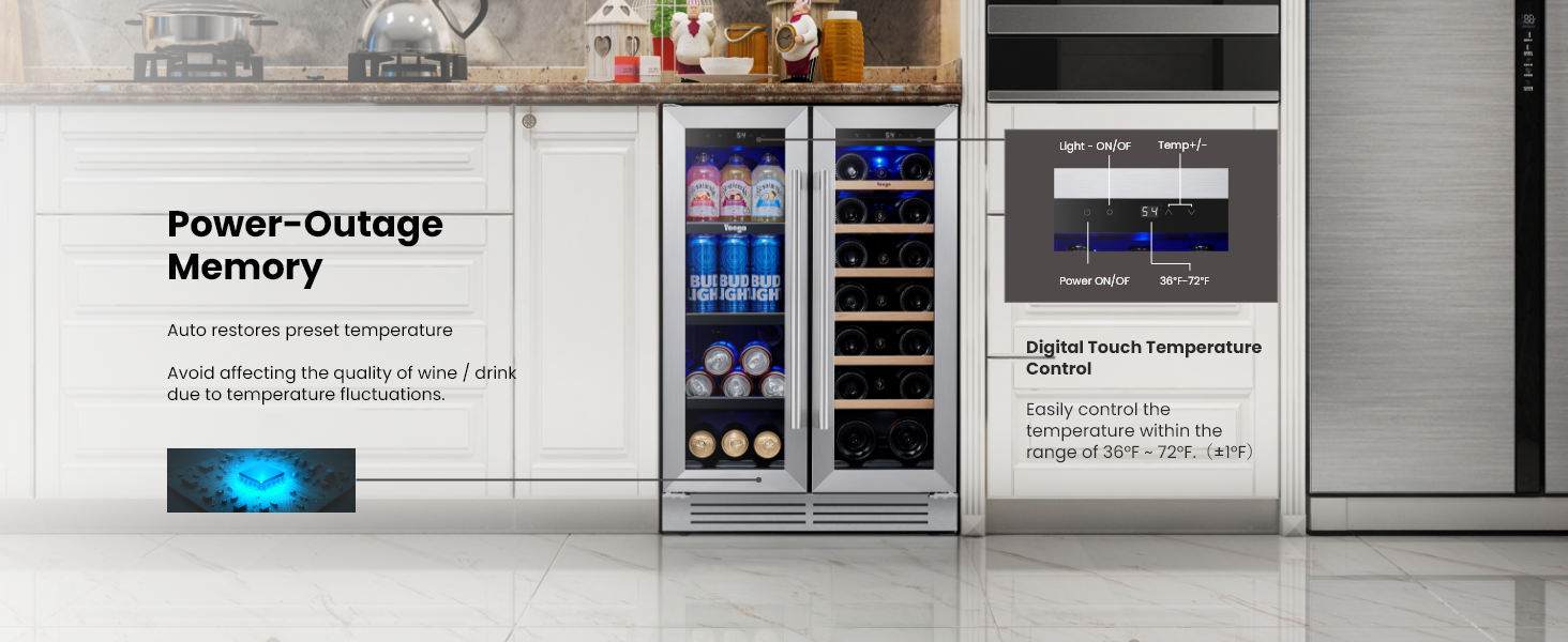 • 【تحكم في درجة الحرارة بمنطقتين مزدوجتين 36-72 درجة فهرنهايت】يتميز مبرد النبيذ هذا بلوحات تحكم مستقلة لكل جانب، مما يسمح بتعديلات منفصلة لدرجة الحرارة (درجة مئوية/درجة فهرنهايت). يضمن التحكم الدقيق في درجة الحرارة بمقدار 1 درجة فهرنهايت وميزة ذاكرة انقطاع الطاقة بقاء النبيذ/المشروبات الخاصة بك في بيئة مزاجية مثالية. تحتوي ثلاجة النبيذ على أنظمة دوران المروحة بالداخل ونظام تنقية الكربون الذي يزيل الروائح ويحافظ على نضارة الجزء الداخلي. بالإضافة إلى ذلك، تضيف الإضاءة الزرقاء الناعمة لمسة أنيقة إلى مجموعتك.