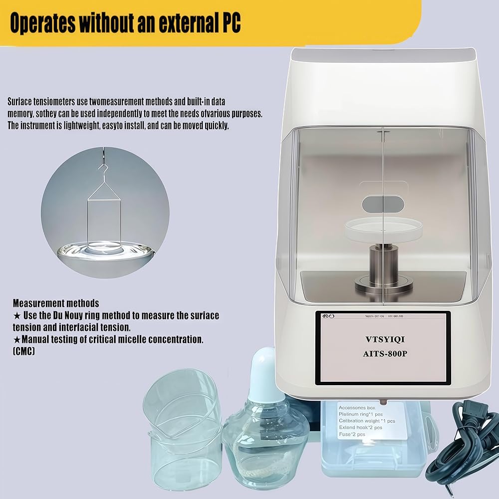 Liquid interfacial tensiometer This surface tensiometer, which is widely used in quality control processes related to surface interfacial tension,such as emulsifier or wetting agent and cleaning agent testing. It is reliable, easy to use, independent of computers and other equipment, and can provide accurate and reliable analysis when testing a large number of samples. This surface tensiometer is controlled by automatic moto r to realize fast switching of accurate surface tension measurement
