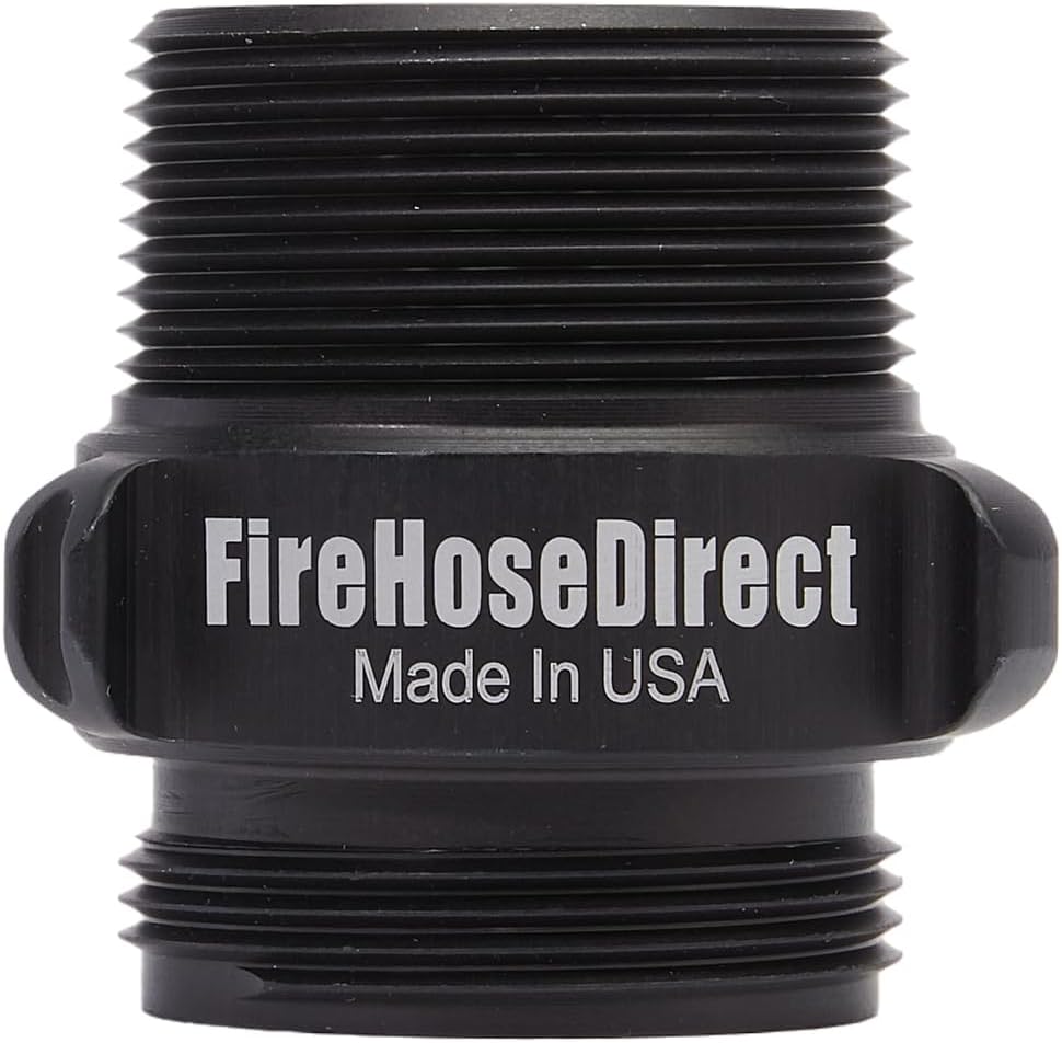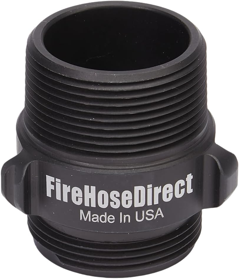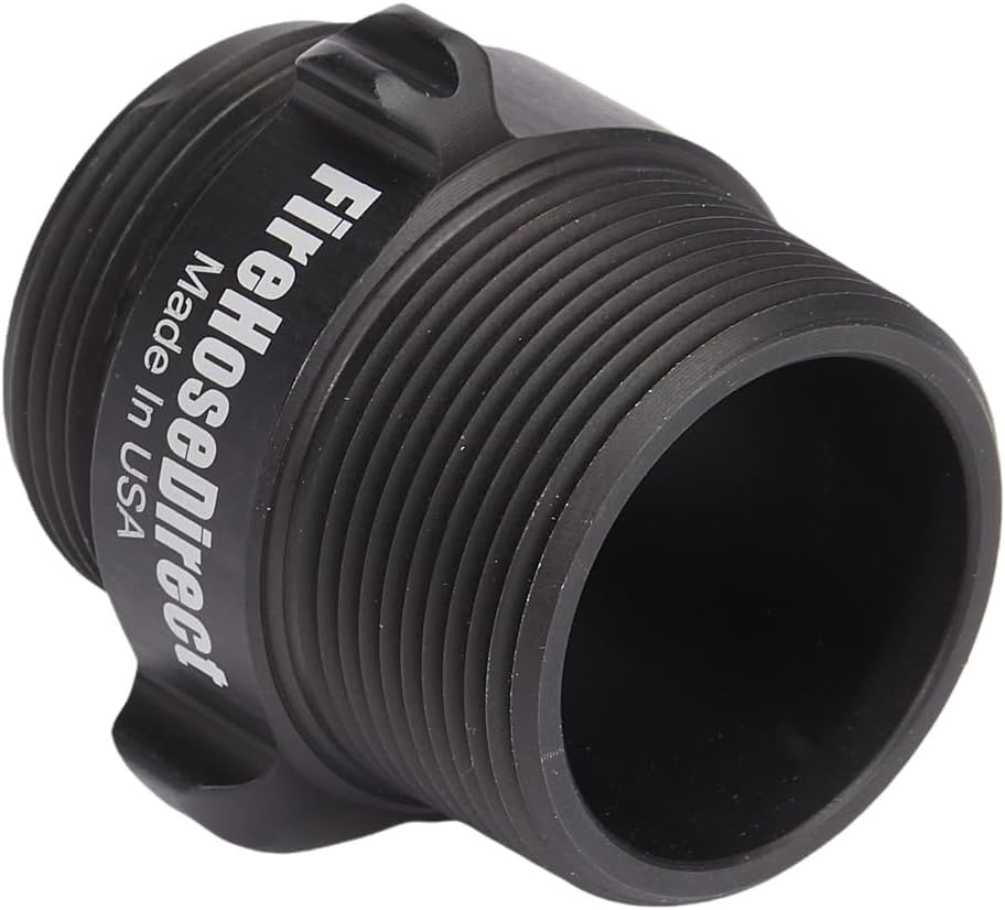 Aluminum adapters are fabricated from seamless extruded 6061-T6 aluminum and hard coat anodized per MIL-A-8625 Type III, Class 1. Threads have a blunt start Higbee cut with indicators on adjacent lugs. Part identifications are permanent and stamped prior to hardcoat. Adapters and components meet the requirements of NFPA 1963.