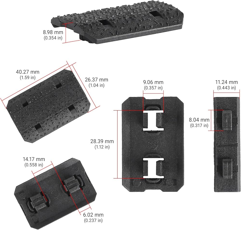 Package Included: 12 pcs/Set 4 cm longth rail covers. Mlock type 2 rail covers can be directly installed on most MLOK aluminum standard 20 mm Weaver/Picatinny rails