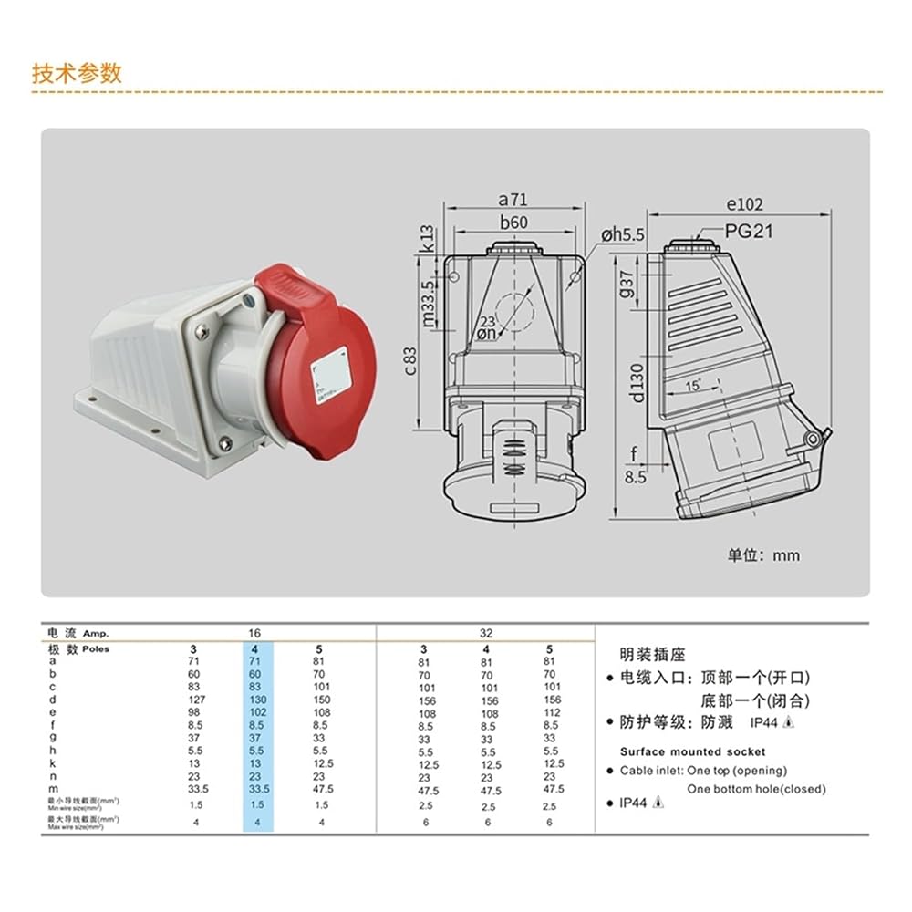 موصل المقبس الصناعي TYPR6618 مثبت على 16A رباعي النواة ثلاثي الطور وأربع أسلاك