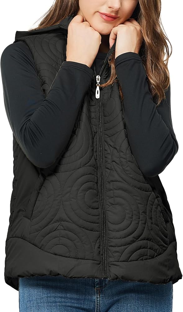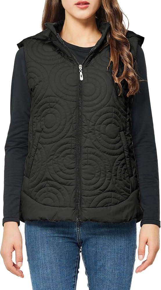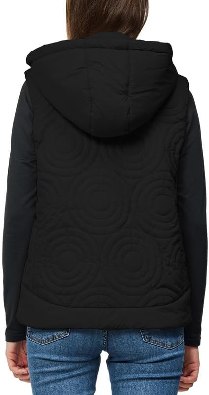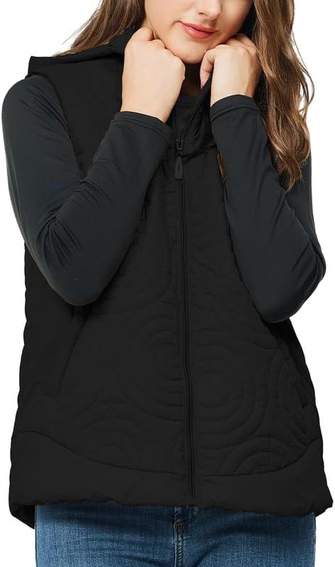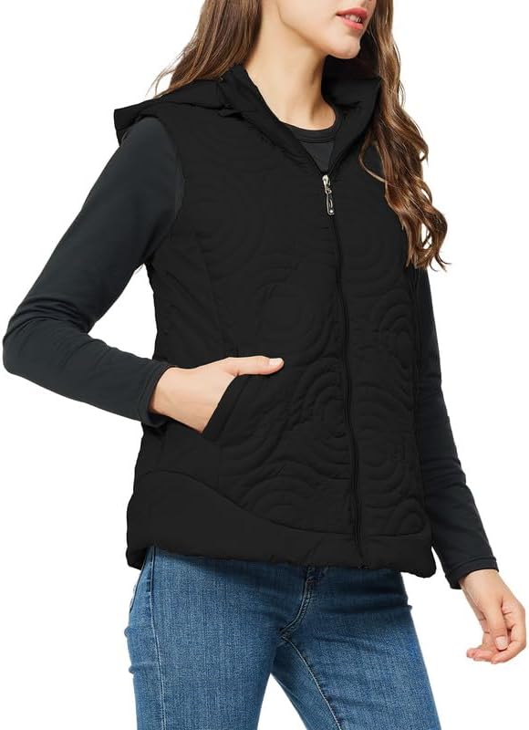 سترة نسائية مبطنة: تتميز السترة النسائية بدون أكمام بياقة واقفة، وسحاب أمامي للإغلاق، وجيبين جانبيين بسحاب مع زخرفة زر لسهولة التخزين والحفاظ على دفء اليدين.