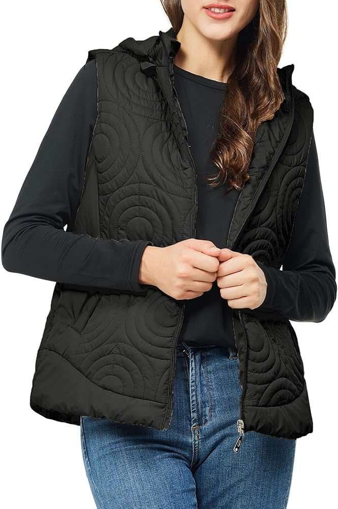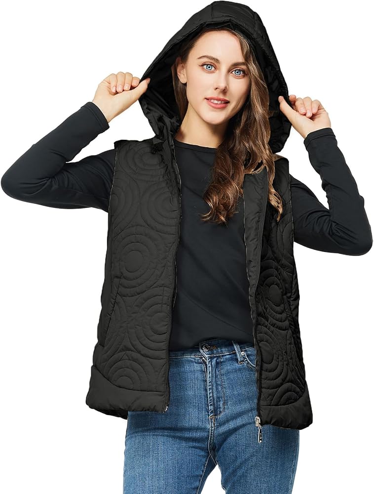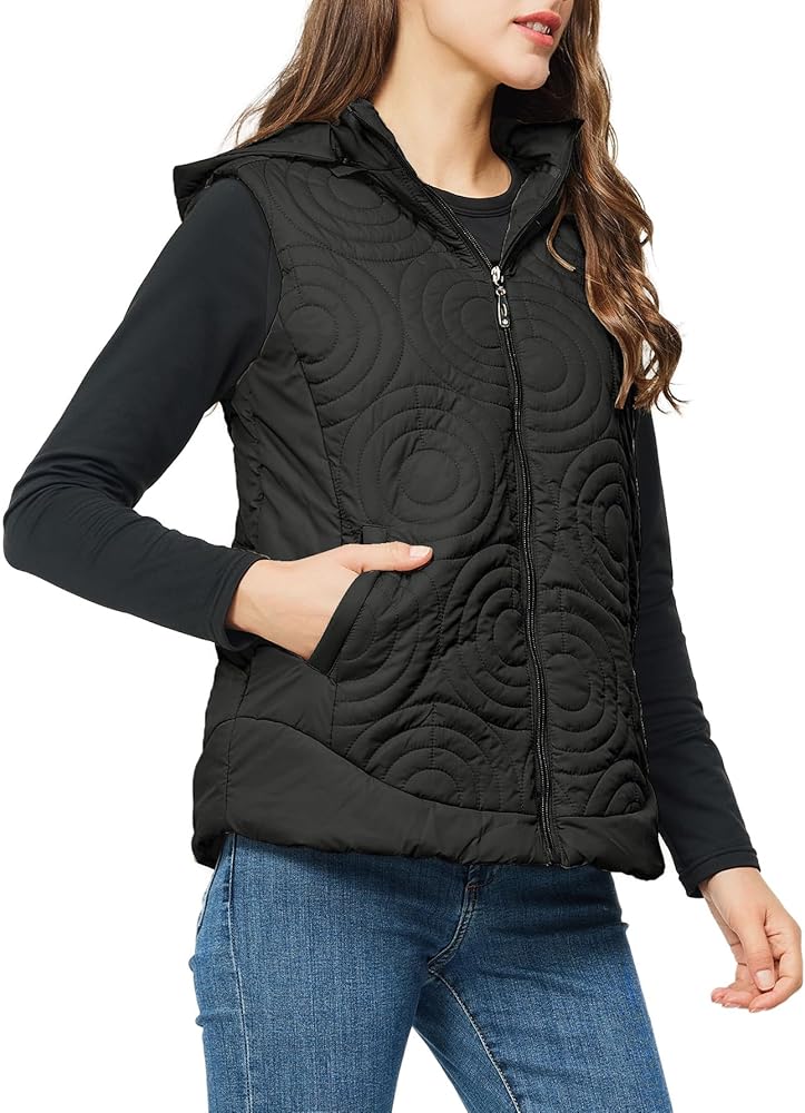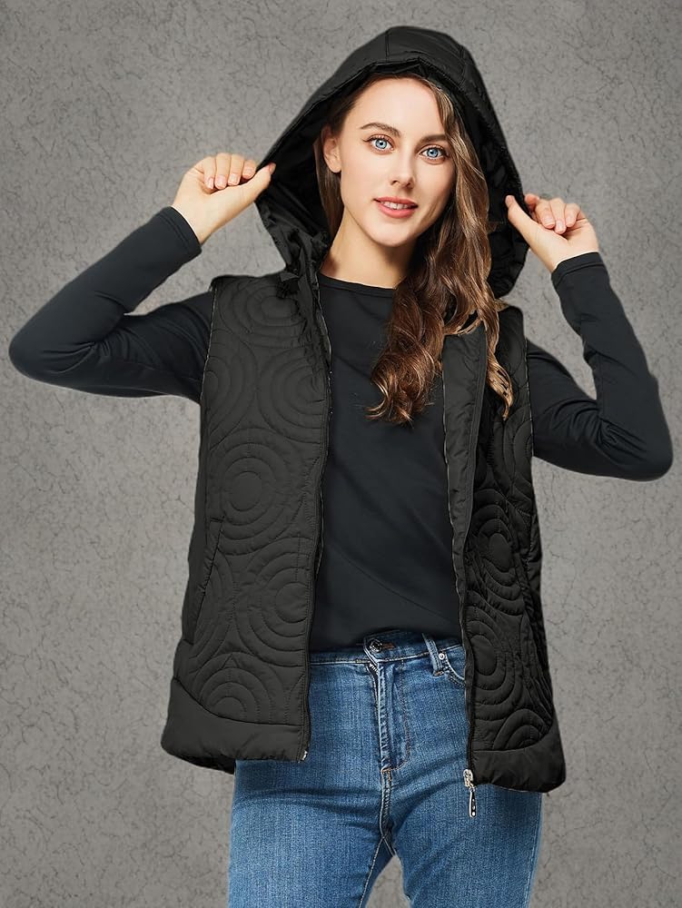 سترة نسائية بغطاء للرأس: سترات مبطنة للنساء خفيفة الوزن تتميز بجيبين جانبيين، وغطاء رأس قابل للفصل، وحاشية منحنية، وسحاب أمامي كامل لملاءمة مرنة ومريحة.