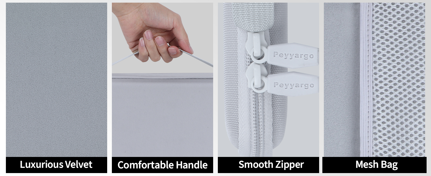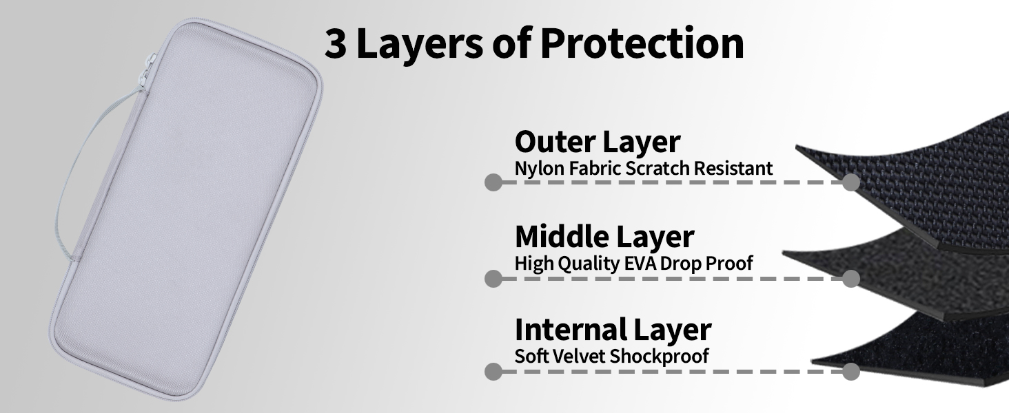 • الجزء الخارجي للعلبة: مصنوع من مزيج قوي من النايلون وEVA، وقد تم تصميم الجزء الخارجي لحقيبة Peyyargo هذه لتحمل الاستخدام اليومي والسفر. توفر هذه المواد عالية الجودة متانة استثنائية ومقاومة للخدش وامتصاص الصدمات، مما يجعلها مثالية لحماية لوحة المفاتيح الهادئة أثناء التنقل والمغامرات الخارجية. يقاوم الغلاف الخارجي القوي الخدوش والخدوش، مما يحافظ على مظهر الجراب الخاص بك أنيقًا وجديدًا مع توفير دفاع موثوق به للوحة مفاتيح Apple Magic الخاصة بك