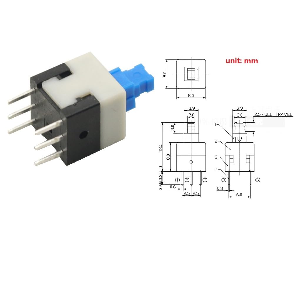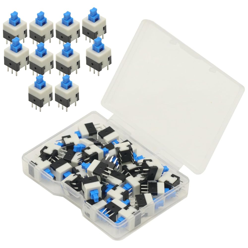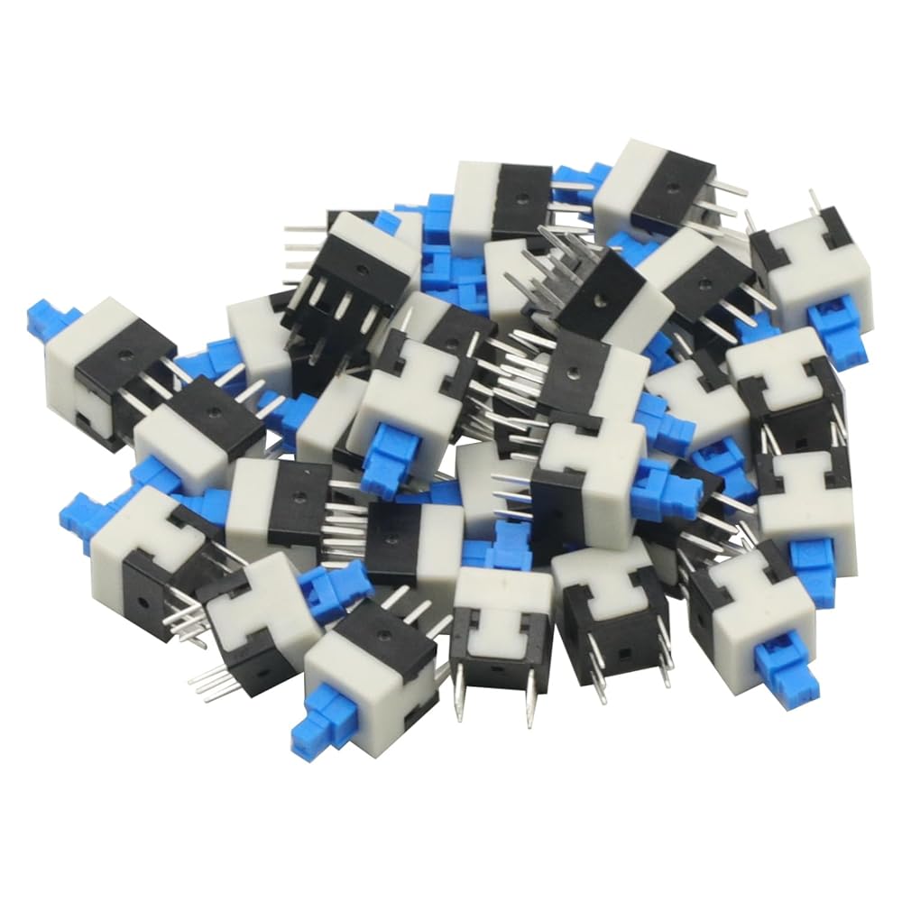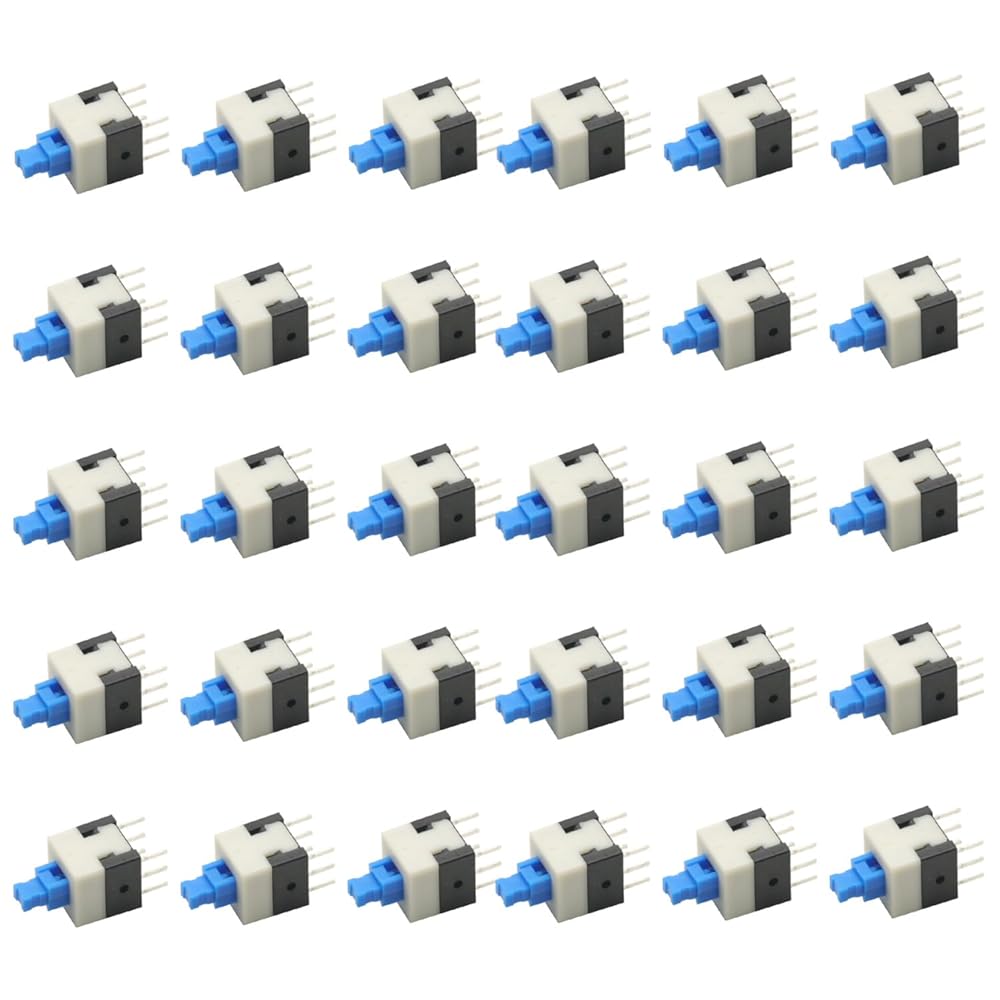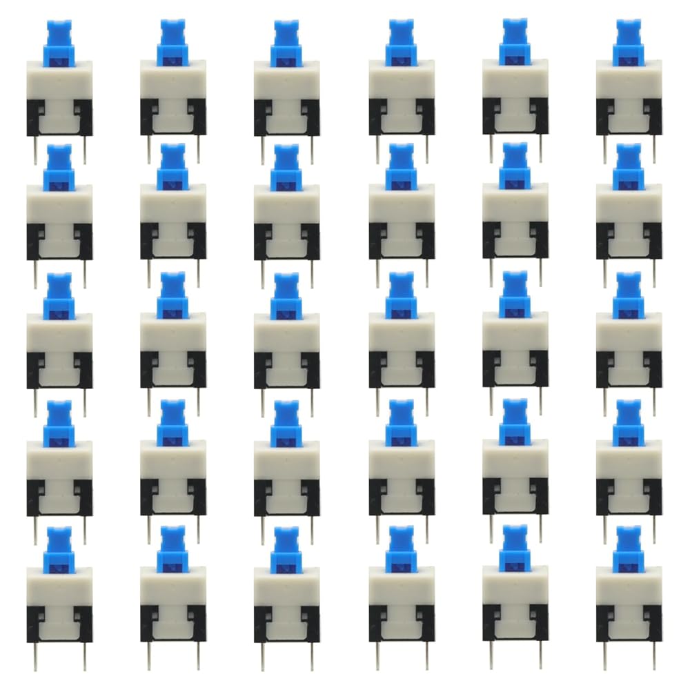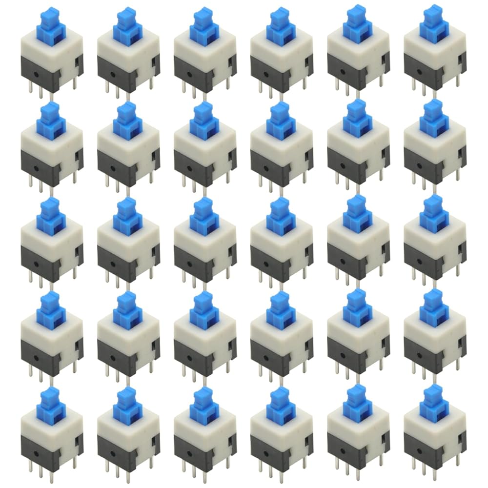 • 30pcs Micro Push Button Switch,8X8mm Blue Cap DPDT Self-locking Type Square Button Switch On/Off Latching Switch 8*8 8X8 mm 6Pin