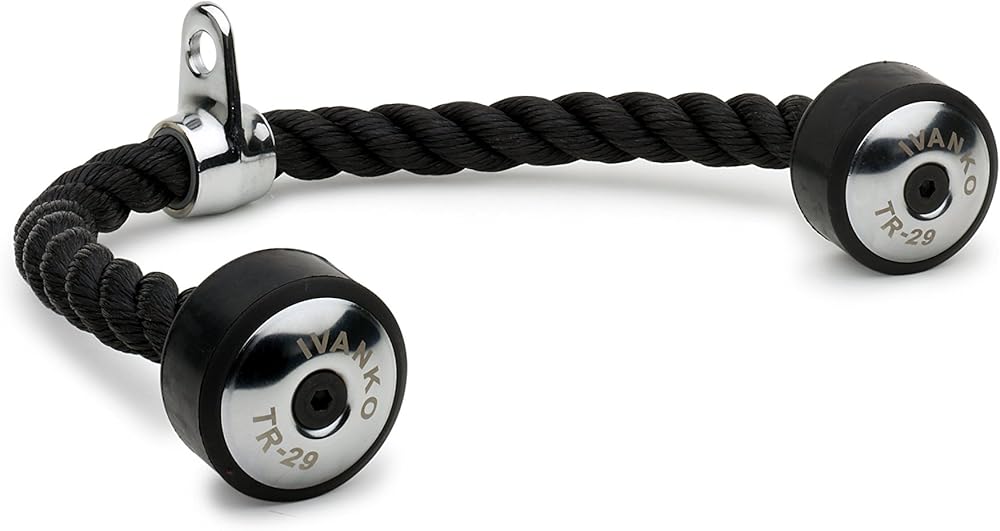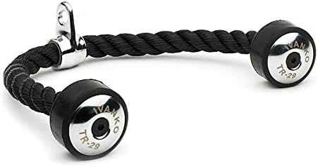 Can be used for various types of tricep extensions, standing, kneeling, or seated curls with a floor pulley. The Ivanko tricep rope will stand up to any and all tough use in a gym. The strongest tricep rope available at a competitive price.