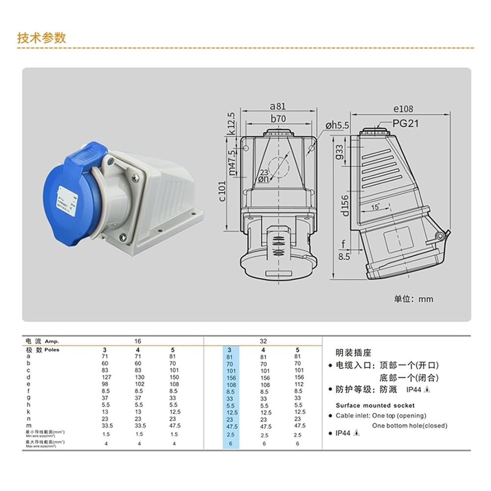 32A 3 كور 220 فولت 6H موصل مقبس صناعي TYPR6801 مثبت