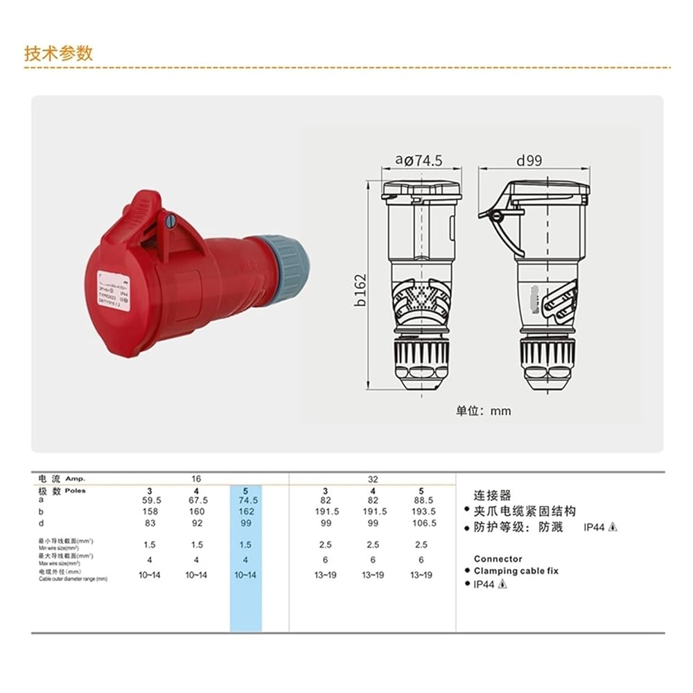موصل المقبس الصناعي للطيران TYPR2623 (16A5 كور) IP44