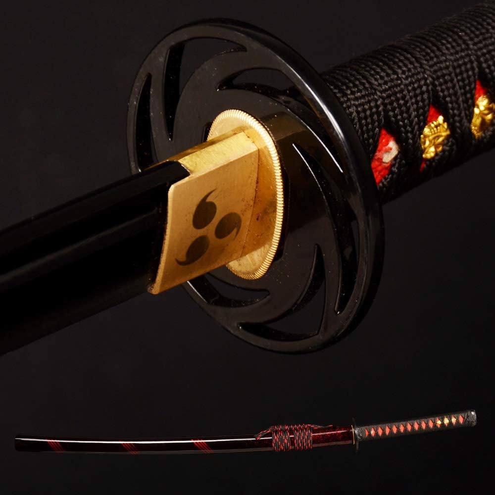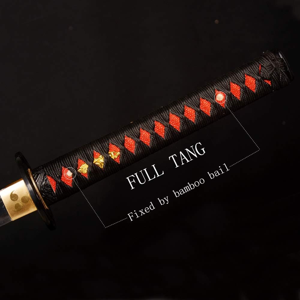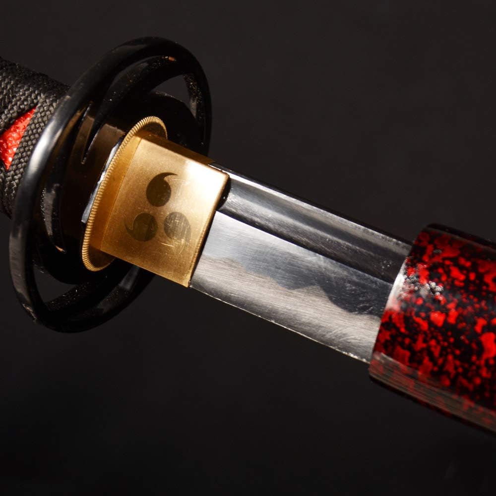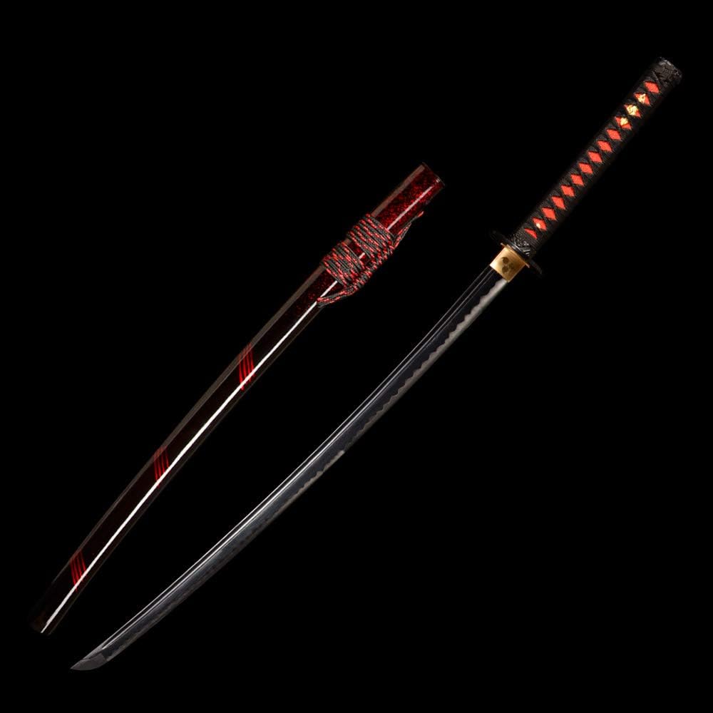 40.55 inch Handmade Katana, High Carbon Steel Blade with Tempered Edge, Red & Black Scabbard with Gold Accents for Collection & Martial Arts