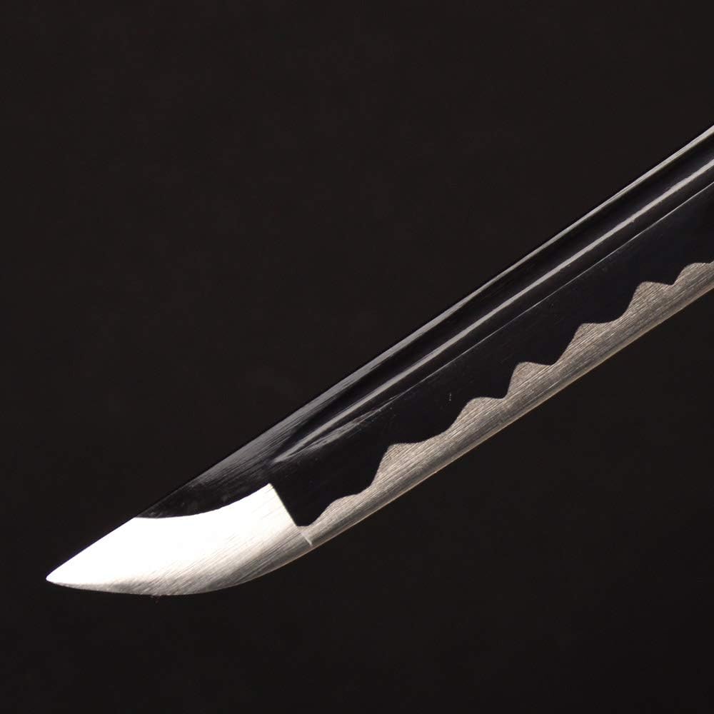 This sword is made of 1095 high carbon steel The blade is repeatedly heat treated and hand forged to remove impurities, which gives it strength and flexibility. After sharpening, the blade is etched with an oxidation process to give the surface it's black color.