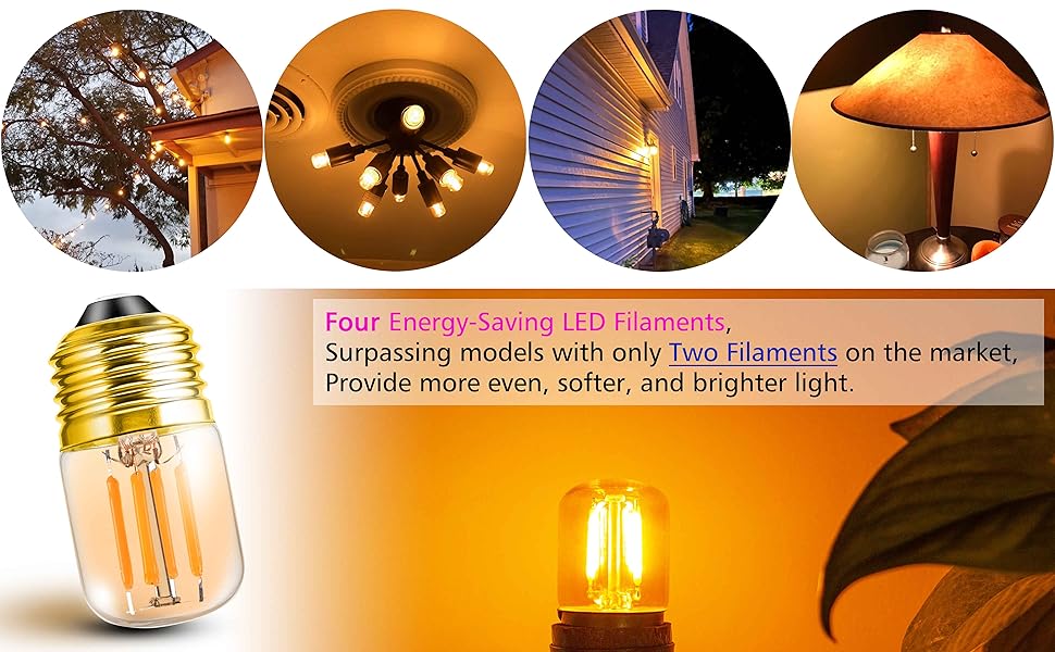 ترقية السطوع: معالجة التعليقات التي تفيد بأن العديد من مصابيح الإضاءة العتيقة ذات الفتيلتين المشابهة (حوالي 100 لومن) الموجودة في السوق "ليست ساطعة بدرجة كافية"، فقد قمنا بترقية كبيرة. تستخدم لمبة الإضاءة الليلية هذه بنية مكونة من 4 خيوط، مما يزيد من التدفق الضوئي إلى 200 لومن. حتى مع مضاعفة السطوع، فإنه يوفر سطوعًا كافيًا ومتساويًا مع الحفاظ على استهلاك طاقة منخفض للغاية بقدرة 2 وات، مما يحل محل تأثير الإضاءة للمصباح المتوهج التقليدي بقدرة 15 وات - 20 وات