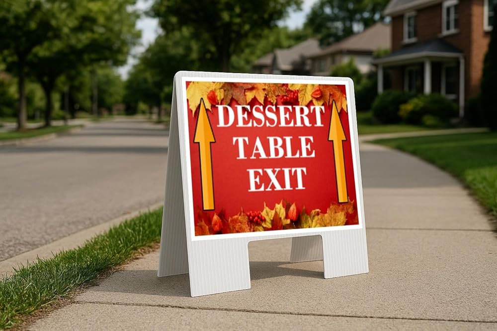 Direct traffic and guide guests with ease using this 23x23 inch double-sided A-frame coroplast sign. Designed with bold arrows on both sides—one pointing left and one pointing right—this freestanding sign provides clear visibility from either direction. The lightweight but durable corrugated plastic material is weatherproof, making it perfect for outdoor use in sun, rain, or wind. With its easy fold-out A-frame design, setup takes only seconds, and no stakes or tools are required. When not in use, the sign folds flat for convenient storage and transport, so it's ready to go whenever you need it. Ideal for events, parking lots, businesses, schools, churches, and community gatherings, this reusable directional sign ensures people always know where to go.