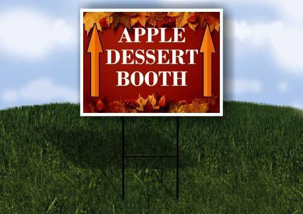 Apple Dessert Booth Autumn Frame Colorful Maple Leaves On Red Background Directional Arrows A-Frame Double Sided 23x23 in. sign in Kuwait