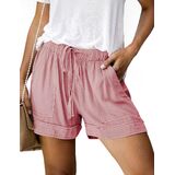 المواد: شورت نسائي صيفي كاجوال برباط 2026 مصنوع من القطن بنسبة 100%، ناعم، مسامي، صديق للجلد وخفيف الوزن. هذا الشورت الرياضي ذو الخصر المرن خيار رائع للطقس الحار، استمتع براحة رائعة ومريحة طوال اليوم