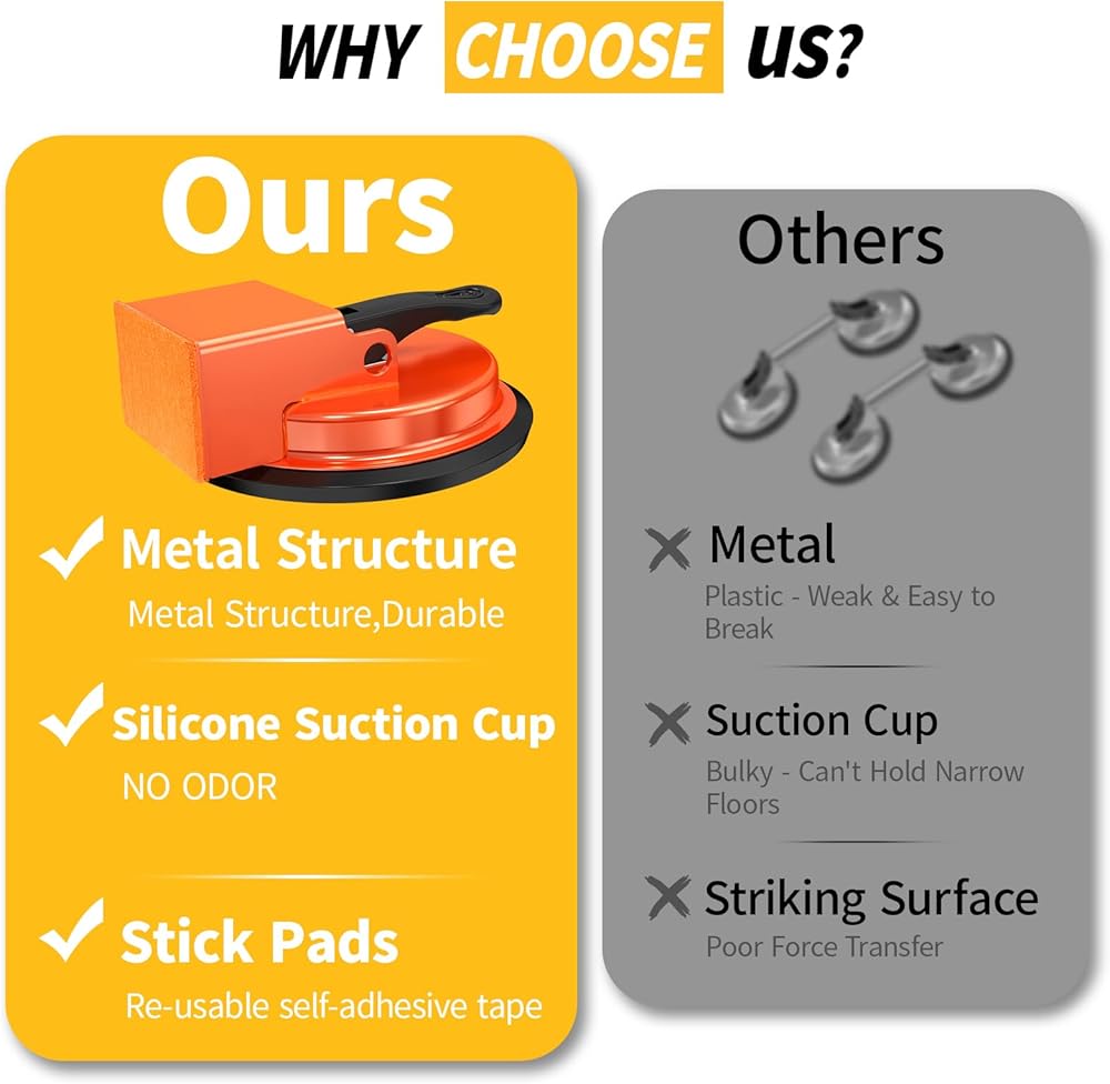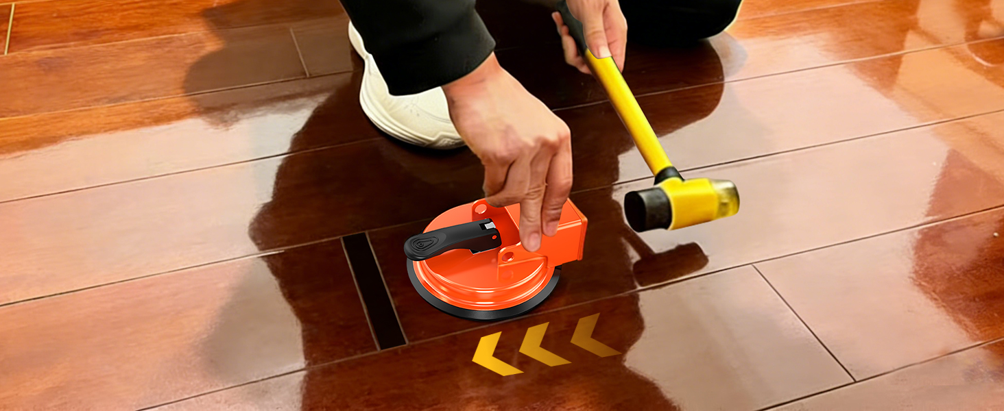 • 【 سهل الاستخدام 】أولاً، نظف سطح الأرض جيدًا. ضع أداة الإصلاح على المنطقة المستهدفة واضغط على الزر لتشغيل الشفط من أجل تثبيت آمن. ثم اضرب الأداة بالتساوي بمطرقة لإعادة ضبط الألواح المنحرفة وإزالة الفجوات القبيحة بسرعة!
