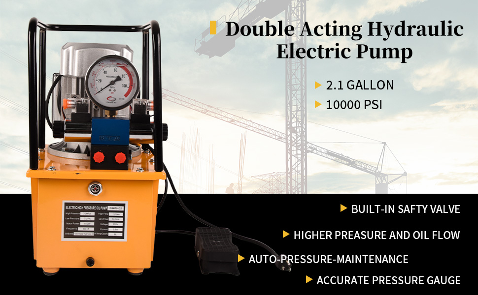 🔨【𝐋𝐀𝐑𝐆𝐄 𝐂𝐀𝐏𝐀𝐂𝐈𝐓𝐘 𝐎𝐈𝐋 𝐓𝐀𝐍𝐊】وحدة الطاقة الهيدروليكية 110 فولت ذات كفاءة عالية، ولها حجم كبير خزان زيت سعة 8 لتر/2.1 جالون/488 بوصة مكعبة. يتميز بمقياس ضغط دقيق ومقاوم للصدمات، مما يسمح لك بمراقبة الضغط في الوقت الحقيقي أثناء العمل.