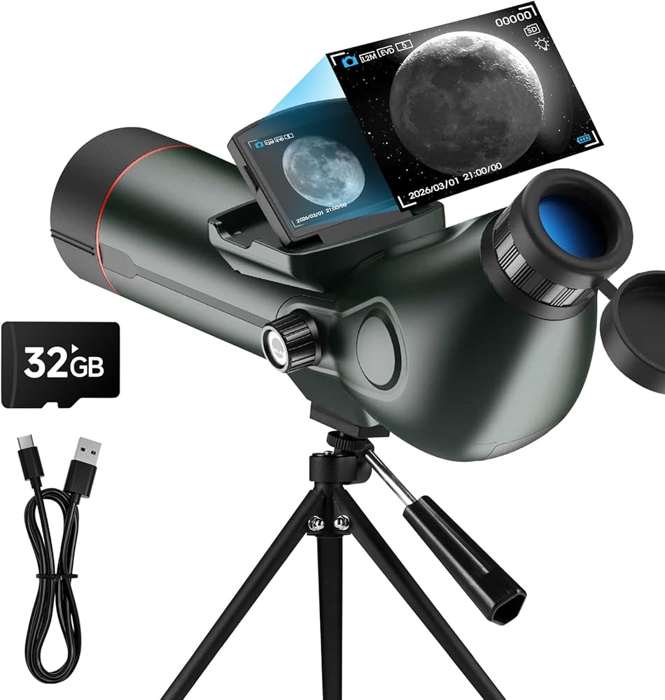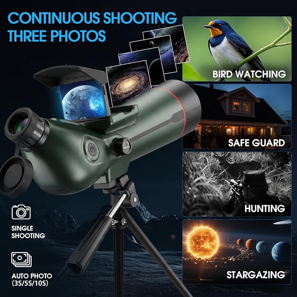 استخدام متعدد الاستخدامات - هدية مثالية لعشاق الهواء الطلق: يأتي مع حامل ثلاثي قوي وبطاقة SD سعة 32 جيجابايت، مثالي لمشاهدة القمر ومشاهدة النجوم والتصوير الفوتوغرافي لمسافات طويلة ومراقبة الطيور وحتى إطلاق النار على الأهداف. هدية مدروسة لمحبي علم الفلك وعشاق الطبيعة على حد سواء