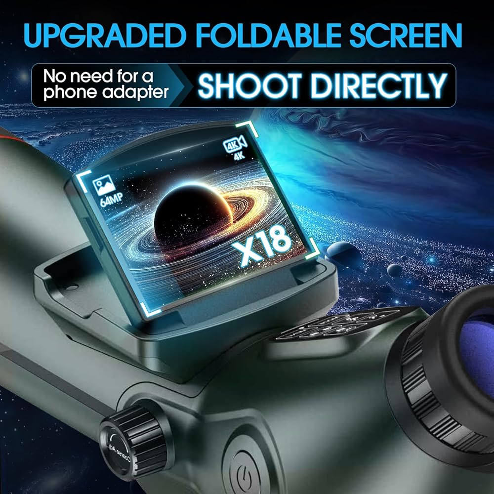 التبديل بلمسة واحدة بين وضعي الصور والفيديو: التقط صورًا مذهلة أو سجل مقاطع الفيديو على الفور باستخدام زر واحد - دون الحاجة إلى أجهزة خارجية. يدعم مساحة تخزين خارجية تصل إلى 512 جيجابايت، مما يجعل من السهل حفظ ومشاركة لحظاتك السماوية