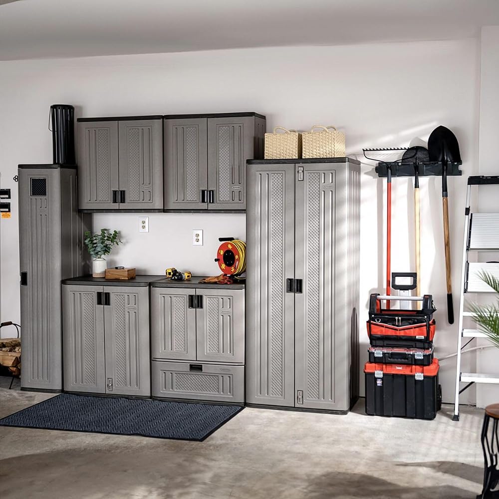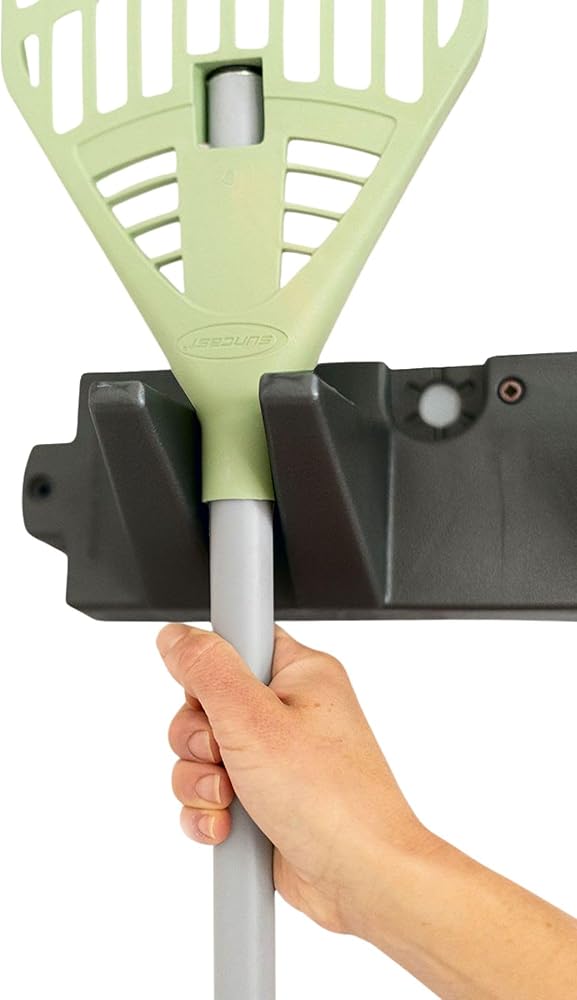 - Durable Tool Hangers: Heavy-duty resin tool hangers help organize long-handled tools to save space and keep items easily accessible
