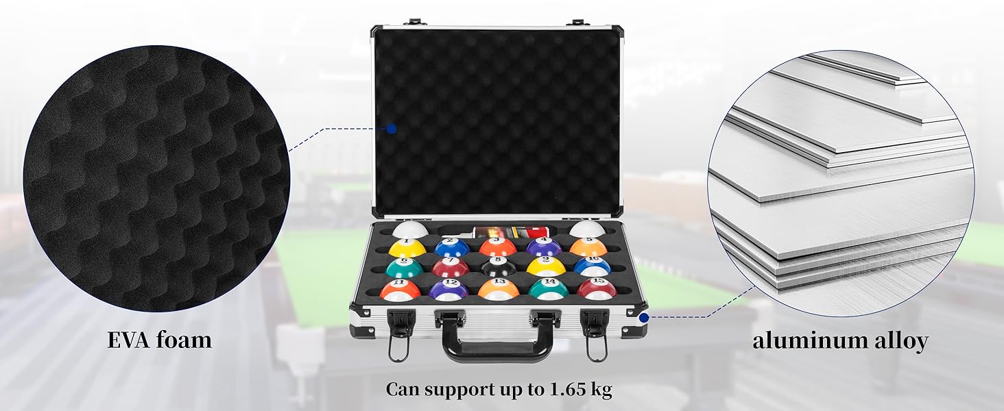 【EVA Lining】The interior of this billiard box is lined with EVA, which fully protects your billiard balls from scratches and impact damage, maintaining the feel of your shot.