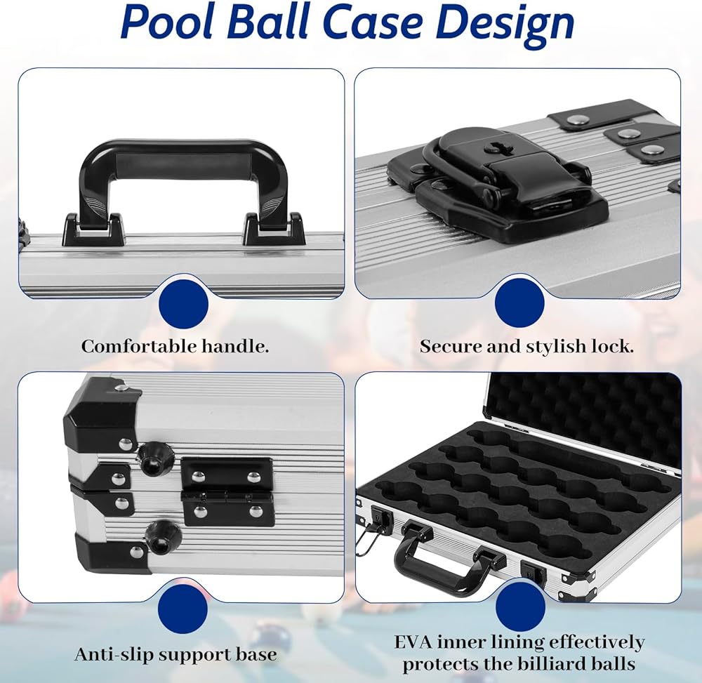 Pool Balls Case Portable Carrying Box with Handle, Large Capacity Hard Billiard Ball Case Aluminum Alloy Material for 8-ball and 9-ball (Case Only) (Lockable, key included)