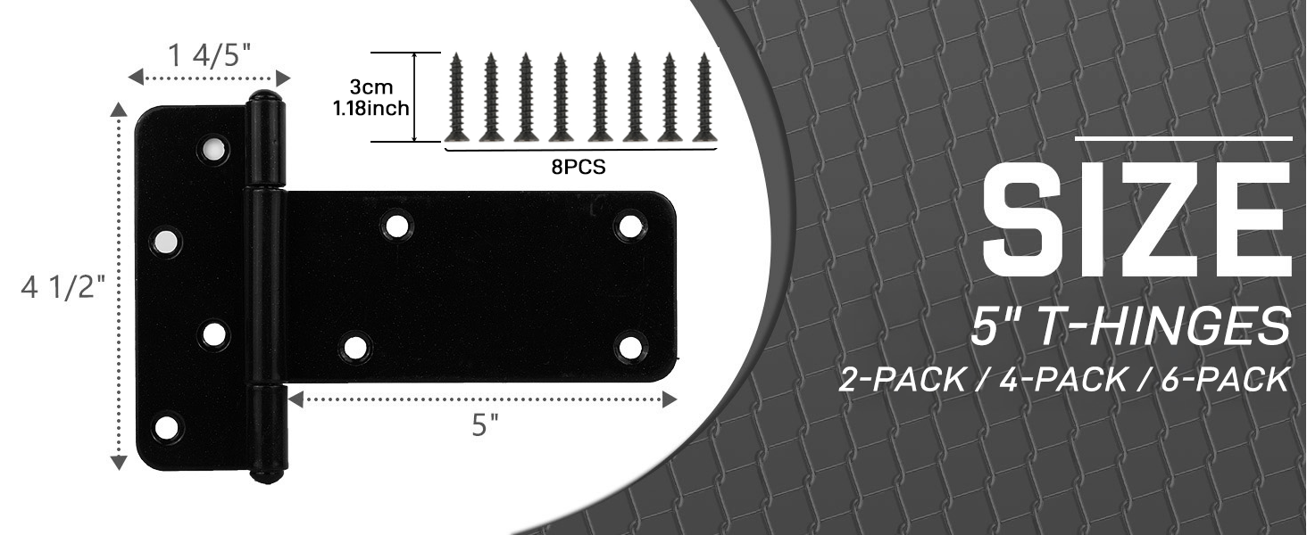 مفصلات بوابة شديدة التحمل مقاس 5 بوصات، مفصلات أبواب سوداء بسعة 260 رطلًا، 4 مفصلات بوابة على شكل حرف T، أجهزة مشغولة للأسوار الخشبية، باب الحظيرة، مسامير متضمنة (5 بوصات - 4 عبوات) - في انتظار الحصول على براءة اختراع in Kuwait