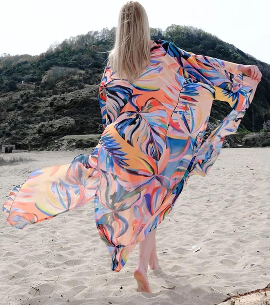 • تتميز أرواب كيمونو الشاطئ الطويلة بأنها متدفقة وجذابة مع طباعة نابضة بالحياة