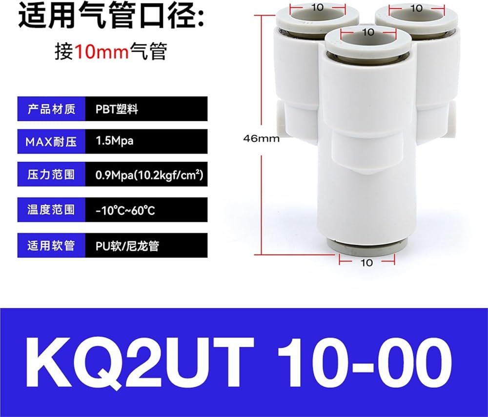 موصل هوائي بخمسة اتجاهات على شكل Y KQ2UD04-06 القصبة الهوائية سريع بقطر متغير PRG08-10 رباعي الاتجاهات 1 قطعة (四通KQ2UT10-00)