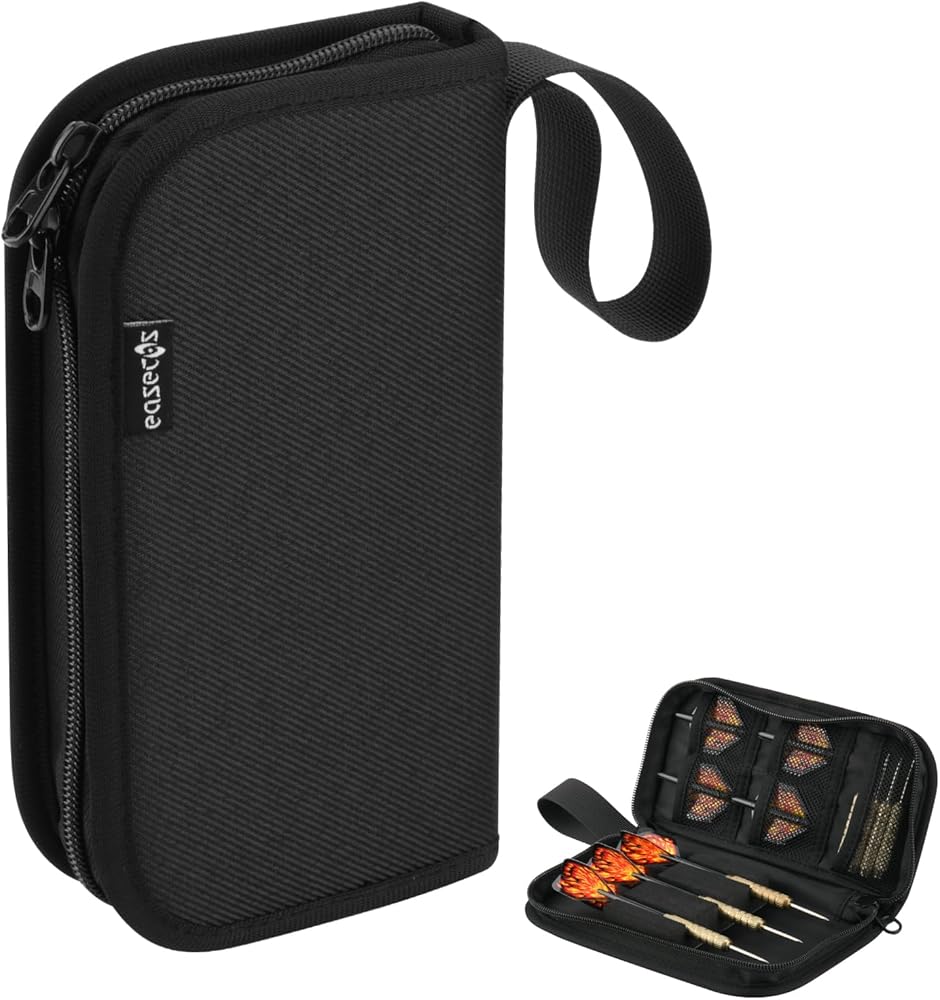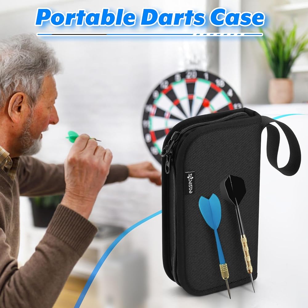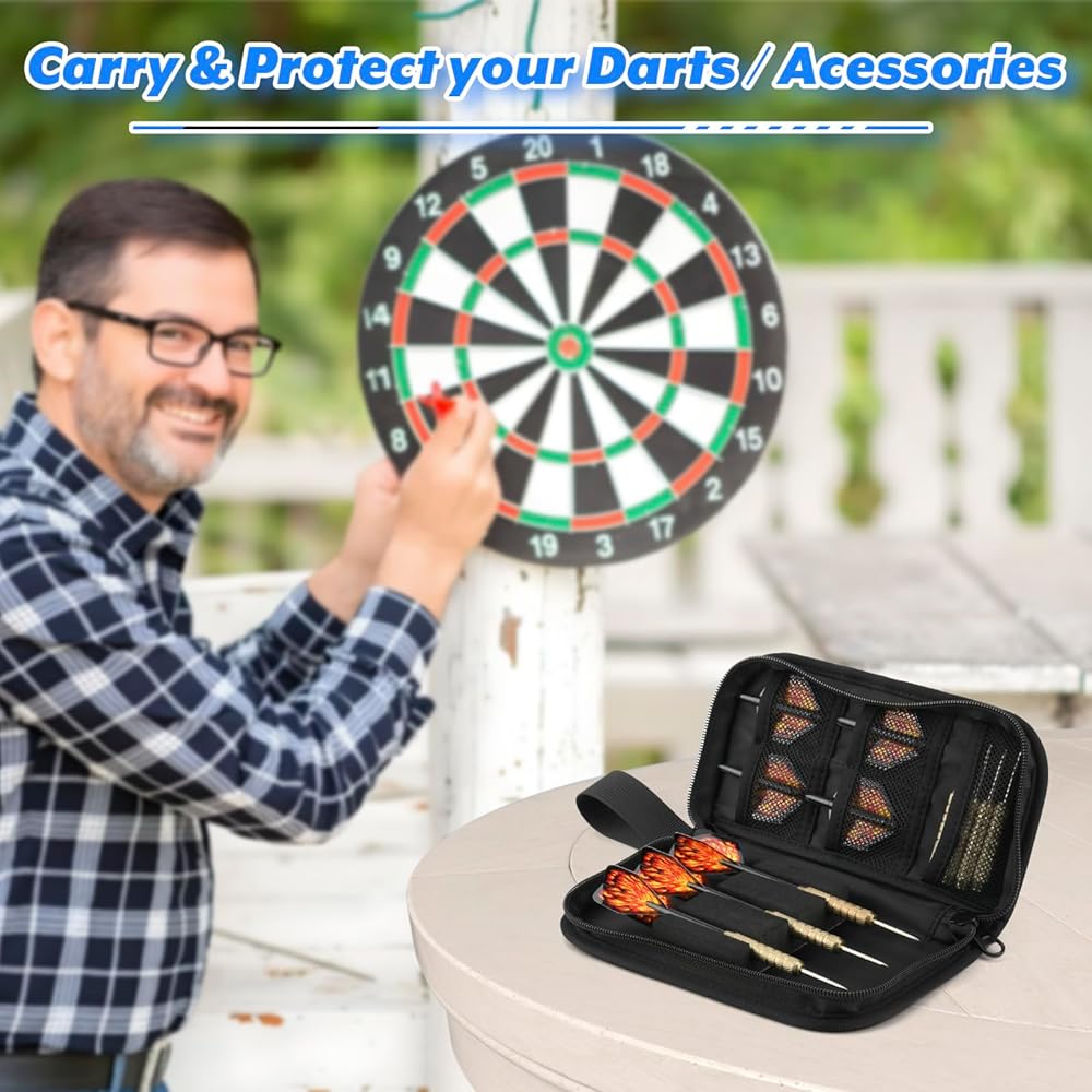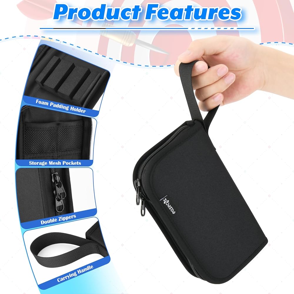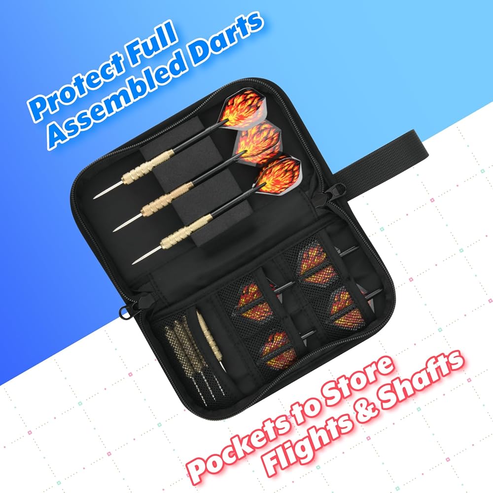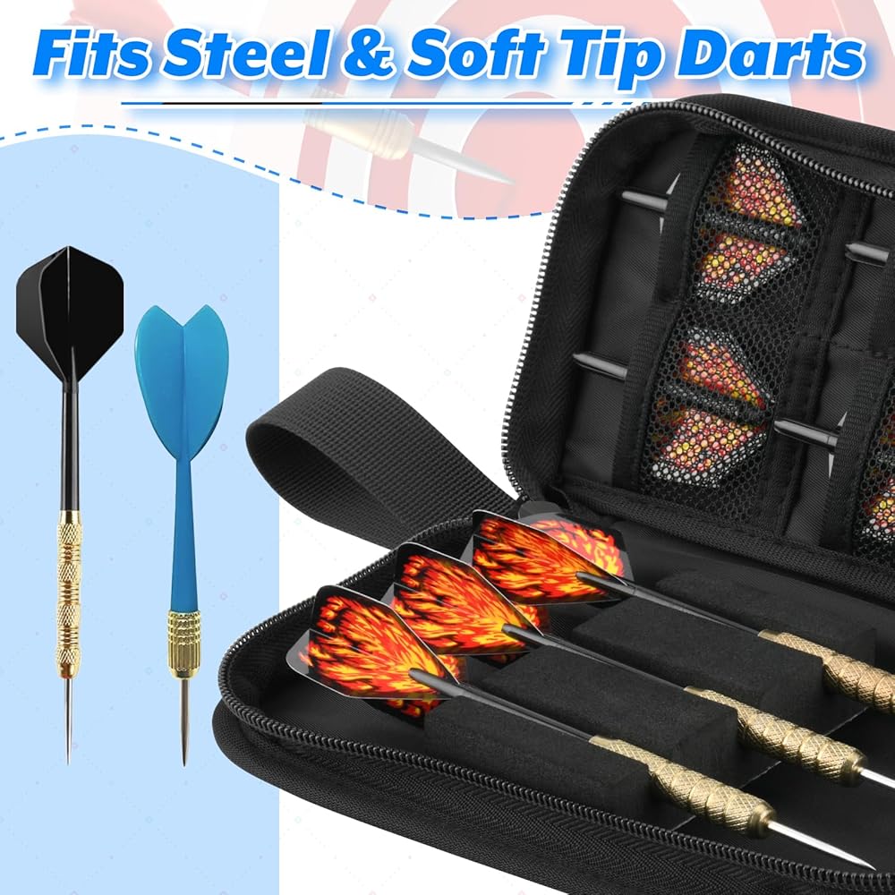منظم محفظة رمي السهام - حقيبة تخزين مدمجة للسفر وحقيبة حمل للسهام الفولاذية ذات الأطراف الناعمة، تحمل 3 سهام مجمعة، طرف، عمود، طيران وإكسسوارات، مناسبة للاعبي بطولات الألعاب
