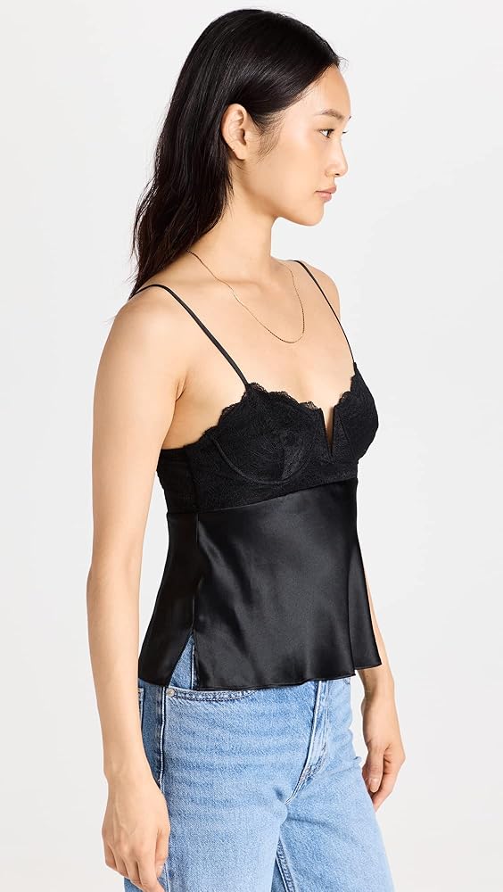 A touch more stylish and romantic than your usual cami, this CAMI NYC top features a tonal combination of a structured lace bodice and shimmery silk fabric.