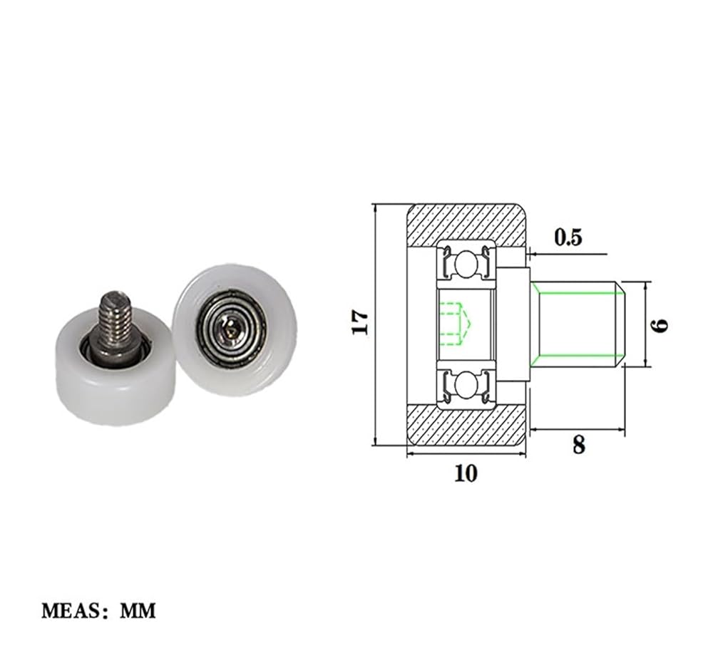 Externally Threaded POM Plastic Bearing BS68517-10C1L8M6 high wear-Resistant Nylon Threaded Guide Wheel