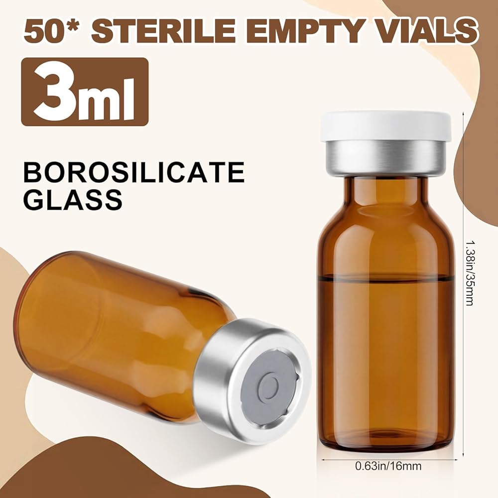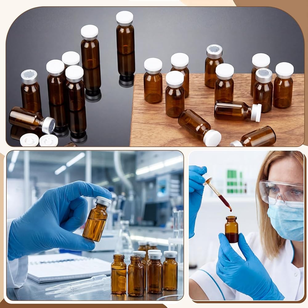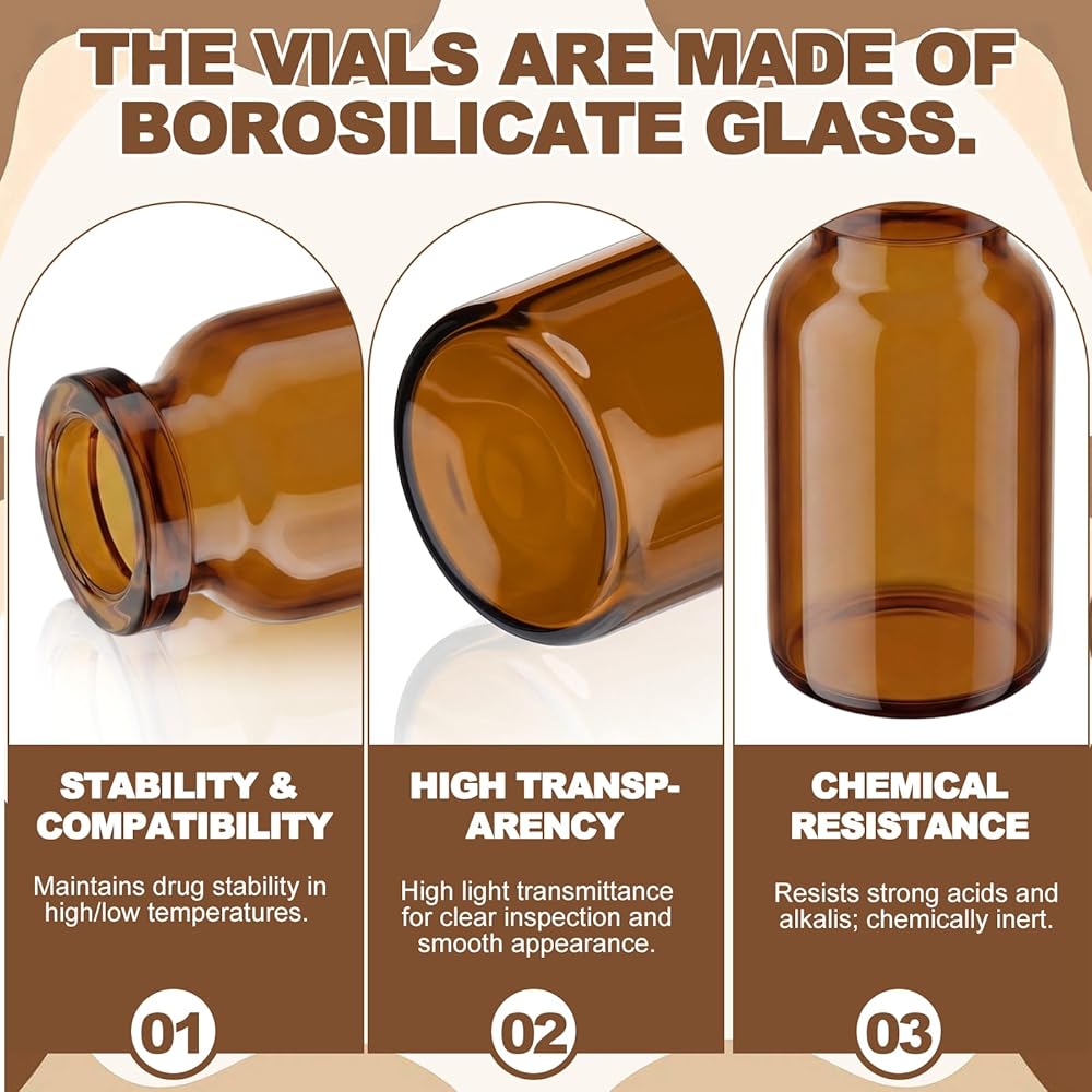 Glass vials for injections are amber. Amber colored glass vials are suitable for photosensitive reagents or liquids, preventing UV degradation and thus maintaining sample integrity for a longer period.