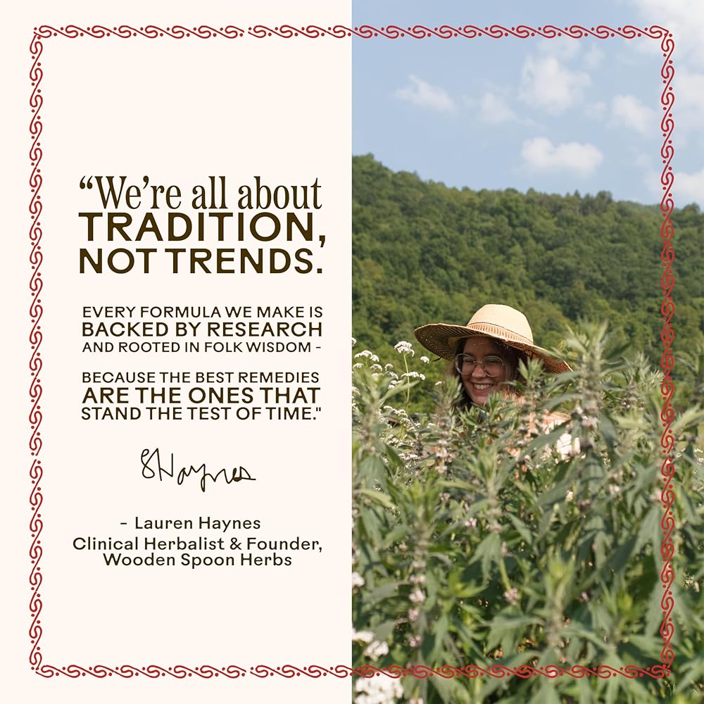 Wooden Spoon Herbs was founded by herbalist Lauren Haynes, who began crafting earth-grown formulas in her Tennessee kitchen and sharing them from an Appalachian farmers' market stall. Today, the mission remains the same: make time-tested, nature-approved wellness rituals accessible, using carefully sourced ingredients and quality-first standards.