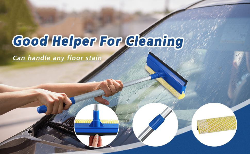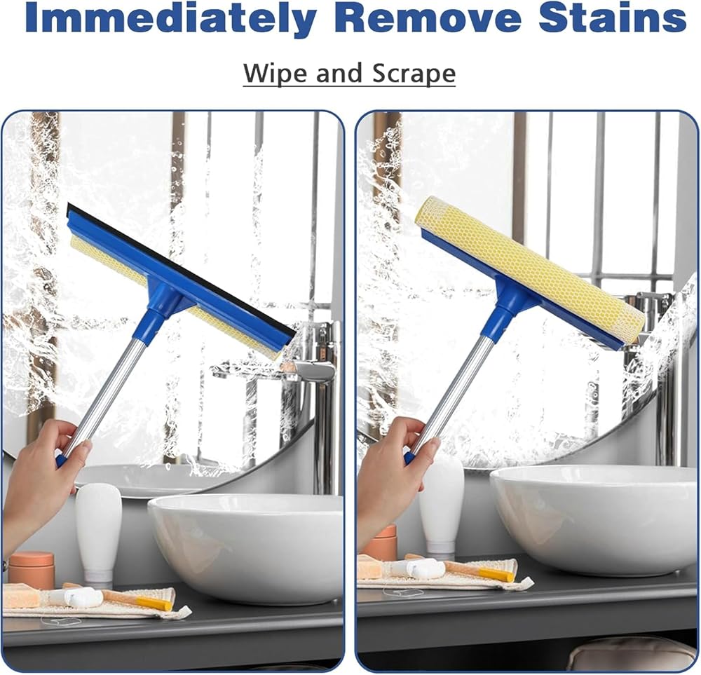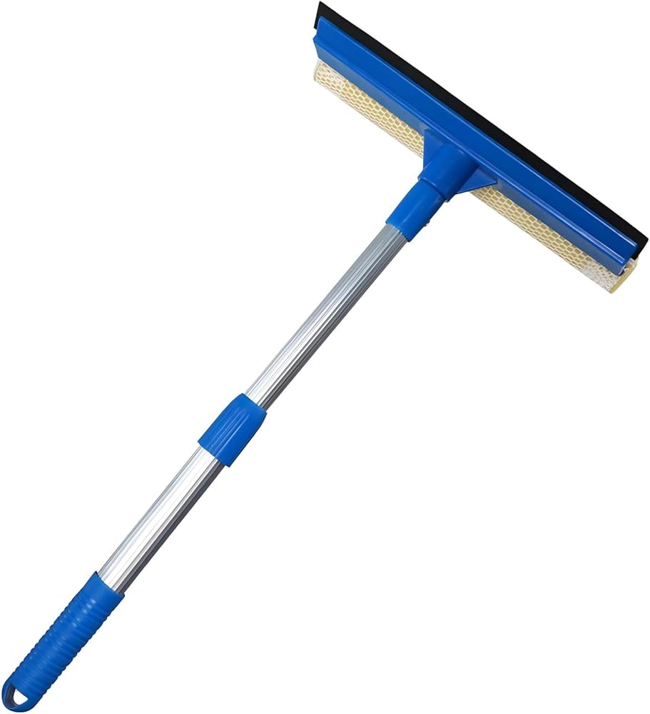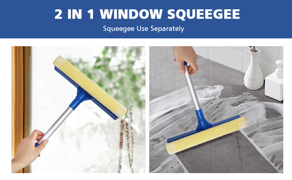 نظام التنظيف والممسحة 2 في 1 يجمع بين إسفنجة كثيفة لتفكيك الأوساخ مع شفرة مطاطية طبيعية مقاس 10 بوصات، مصممة للمساعدة في تقليل الخطوط على الأسطح الزجاجية.