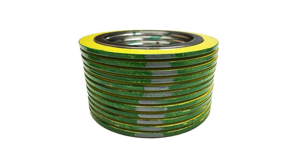 ستيرلنج سيل 900024316GR600X12 316L حشية جرح حلزونية من الفولاذ المقاوم للصدأ مع حشو جرافيت مرن، لأنبوب 24 بوصة، فئة الضغط 600#، شريط أخضر مع خطوط رمادية (عبوة من 12 قطعة)