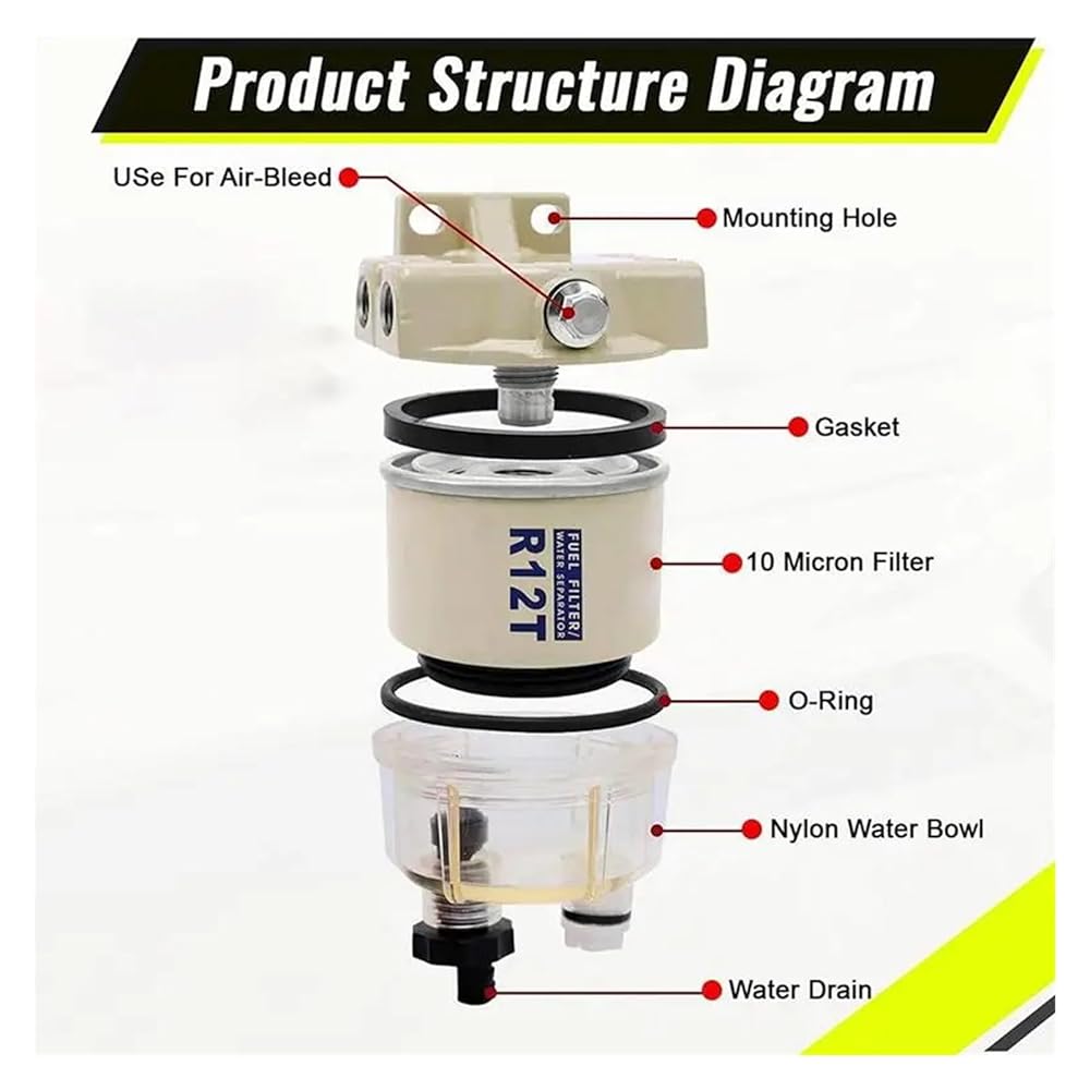 R12T Fuel Water Separator Turbo Engine Filter NPT ZG1/4-19 for 140R 120AT S3240 NPT ZG1/4-19 R12S R12P