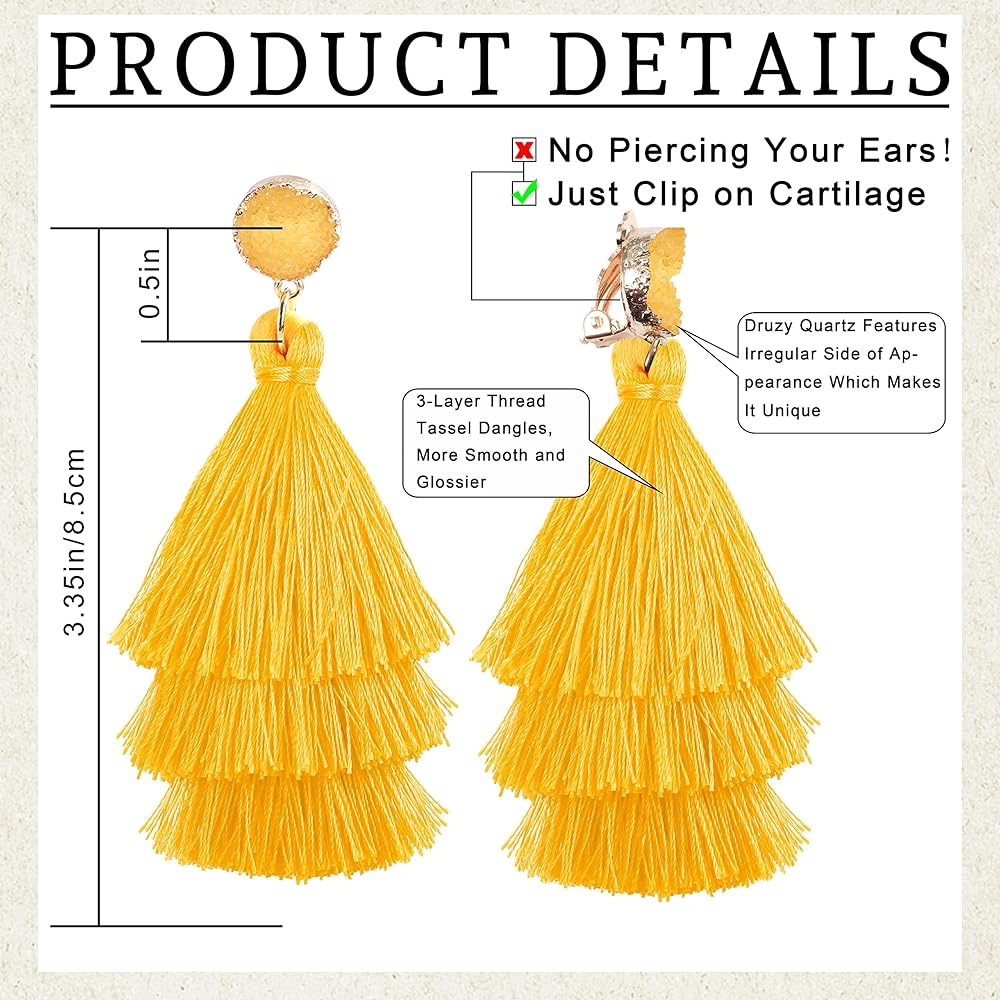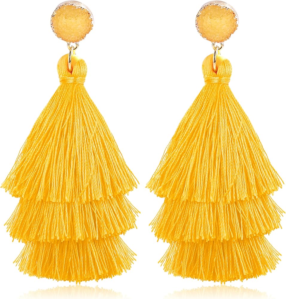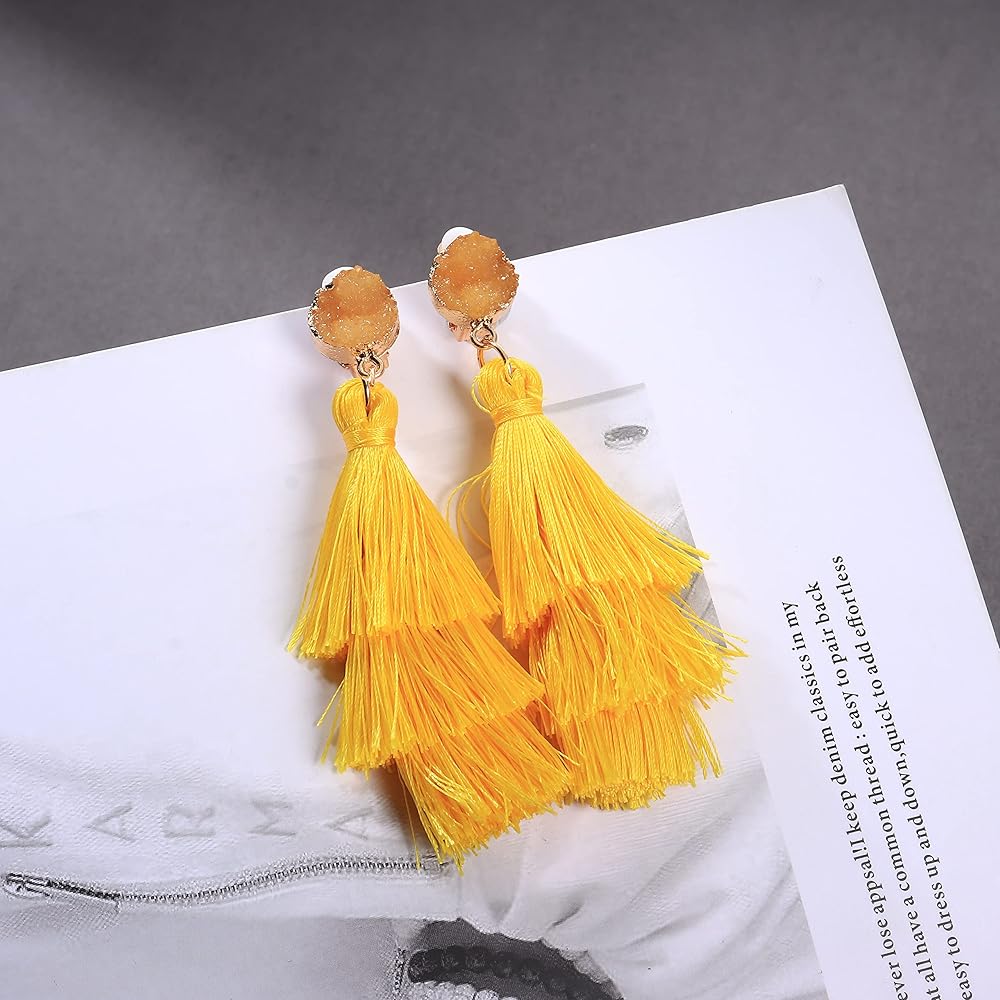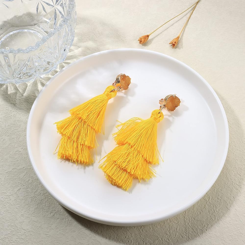 💓أقراط الشرابة الساخنة💓 تتميز هذه الأقراط ذات المشبك البوهو بأحجار كريمة دروزي طبيعية وشرابة من 3 طبقات تتدلى في شكل ضخم مستوحى من تنورة الهولا. اللون مذهل ورائع، اجعل مظهرك مشرقًا مع هذه الأقراط ذات الشرابة.