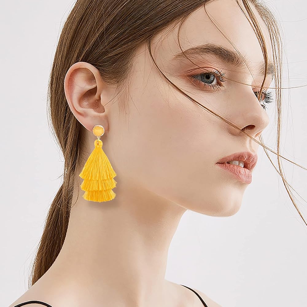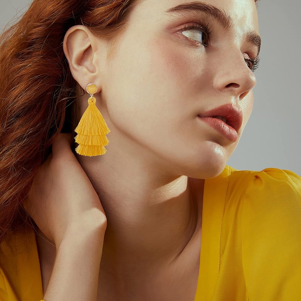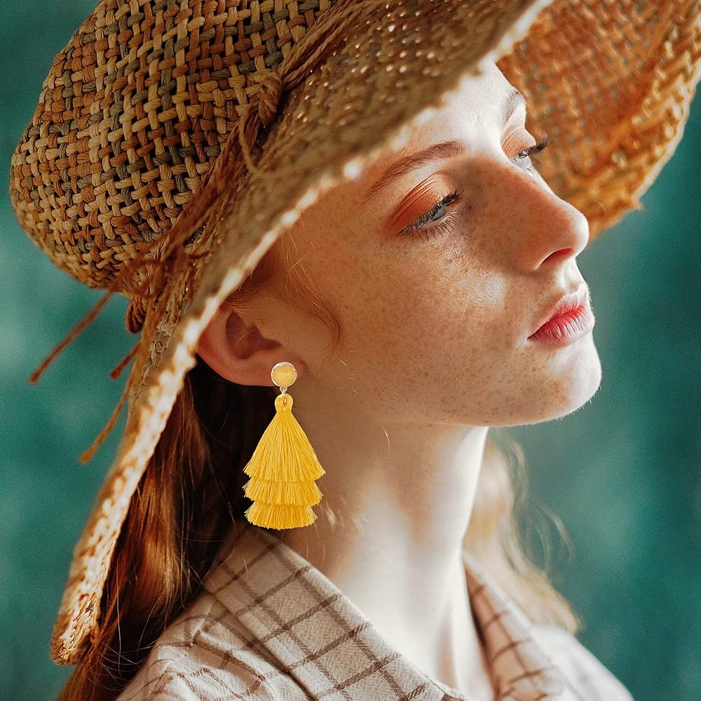 💓أقراط الشرابة الساخنة💓 تتميز هذه الأقراط ذات المشبك البوهو بأحجار كريمة دروزي طبيعية وشرابة من 3 طبقات تتدلى في شكل ضخم مستوحى من تنورة الهولا. اللون مذهل ورائع، اجعل مظهرك مشرقًا مع هذه الأقراط ذات الشرابة.