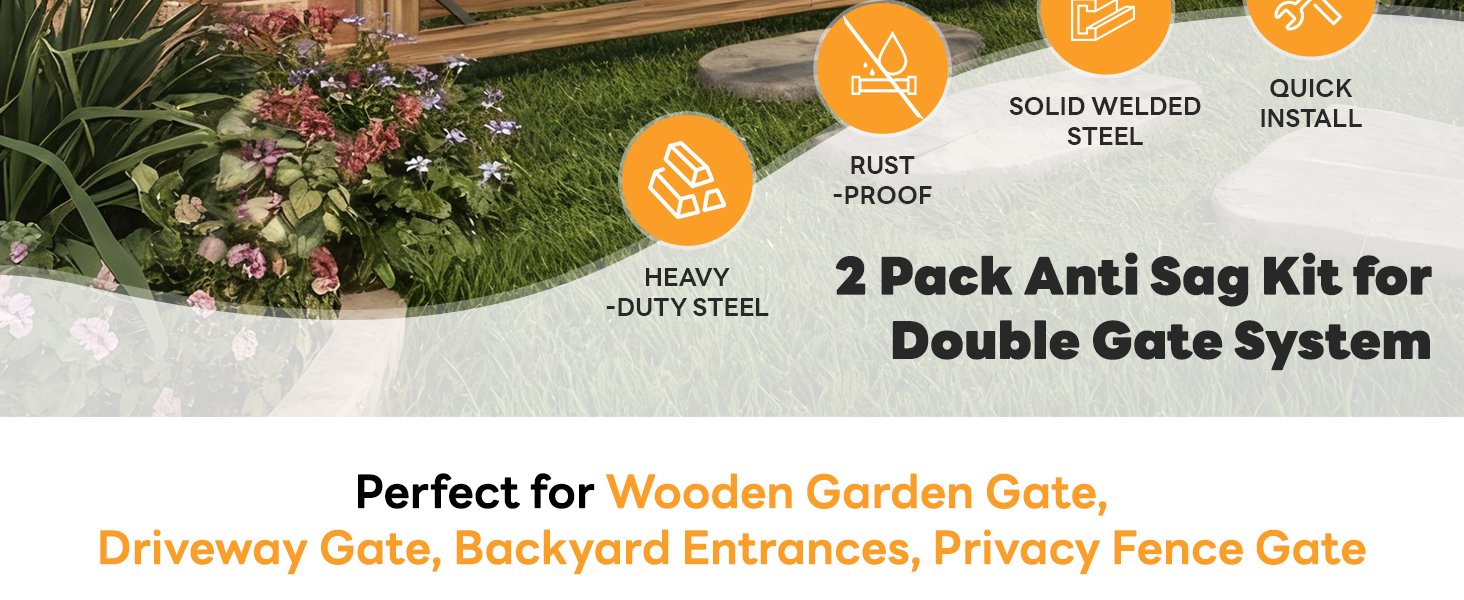 ملاءمة قابلة للتعديل للفتحات - متوافقة مع فتحات البوابة التي يتراوح عرضها من 24 بوصة إلى 60 بوصة لكل بوابة، دون قيود على الارتفاع. مجموعة البوابة المضادة للترهل القابلة للتعديل هذه مناسبة لمختلف الاستخدامات الخارجية، بدءًا من بوابات الحديقة الصغيرة وحتى مداخل الفناء أو الممرات الأوسع.