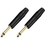 2PCS Mono Jack 6.35MM Connector 1/4 Inch 6.3MM Male Plug Soldering Wire Connector Brass Microphone Plug Connector
