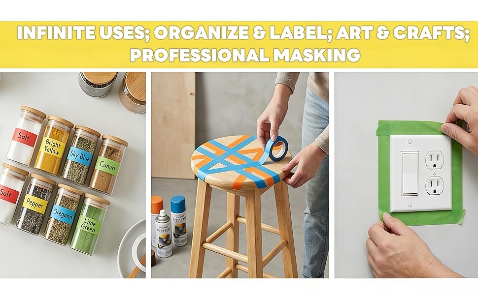 • Easy to Stick and Remove: These masking tapes feature top-notch adhesive that adheres firmly to various surfaces without tearing or curling. They leave no sticky residue when removed and are even writable with a pencil or marker. Please ensure the surface is clean and dry before application