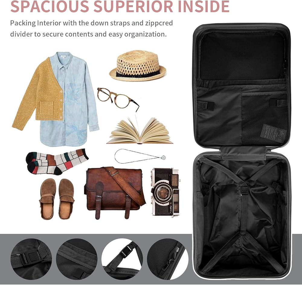 • 【جزء داخلي واسع للتغليف】يعمل حمل الأمتعة مقاس 20 بوصة على زيادة قوة التعبئة لديك، وحجم صغير وسعة كبيرة، كما يسمح لك هيكل الطبقة المنقسمة المرن والجيب الشبكي بسحاب متعدد الوظائف بتعبئة الملابس بسهولة، وجعل العناصر منظمة بأناقة، ويلبي معظم قيود الحجم التي يمكن حملها. للسفر والعمل الخاص بك.