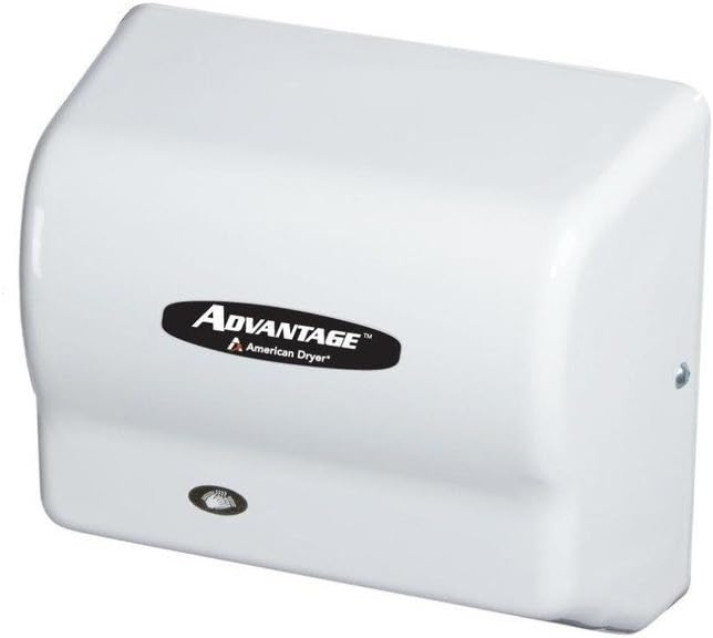 The American Dryer AD90 hand dryer is a great value in a compact, mid-range hand dryer with high quality components. Universal voltage makes it easier to install. Only one watt standby power and 1250-1400W operating usage means terrific savings (vs traditional dryers which use 2300W of power) and no wasted energy. Heavy duty universal motor and NiChrome heating element, both thermally protected for long life. 67 dB Operating sound level is lower than most traditional hand dryers, and much quieter than most high-speed hand dryers. Vandal resistant tamper proof cover screws prevent unauthorized access to hand dryer internals, and a 35 second safety shut off prevents damage in case the infra-red sensor is tampered with.